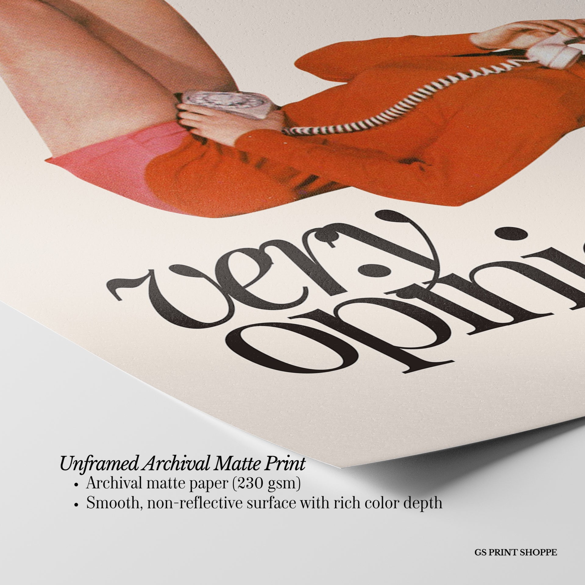 Unframed: This print is professionally printed on archival matte paper (230 gsm), a smooth, acid-free paper with a non-reflective finish. It will be carefully packaged to arrive safely at your door.