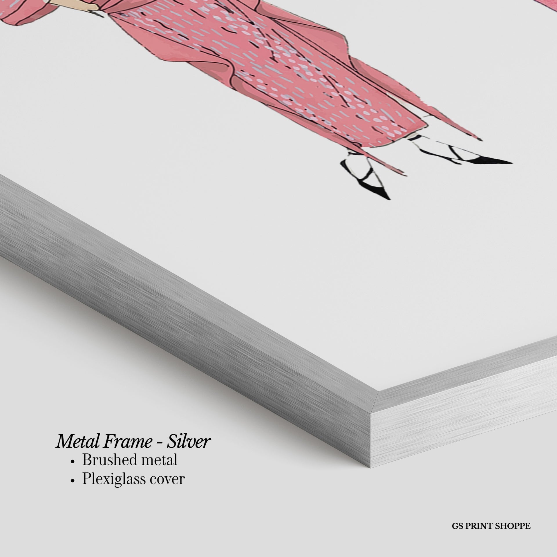 Metal Frame: Sleek and modern, our metal frame is crafted with brushed metal for a polished finish. It comes with durable plexiglass and sturdy metal hangers for horizontal or vertical display.