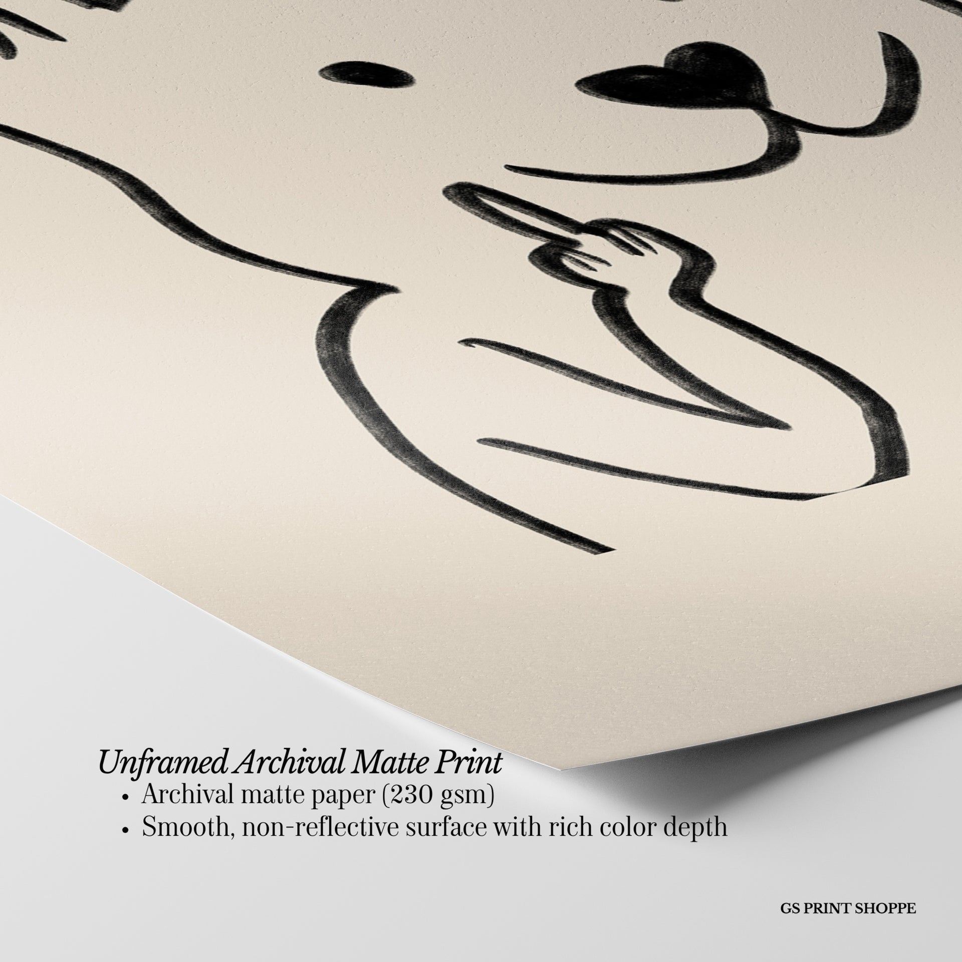 Unframed: This print is professionally printed on archival matte paper (230 gsm), a smooth, acid-free paper with a non-reflective finish. It will be carefully packaged to arrive safely at your door.