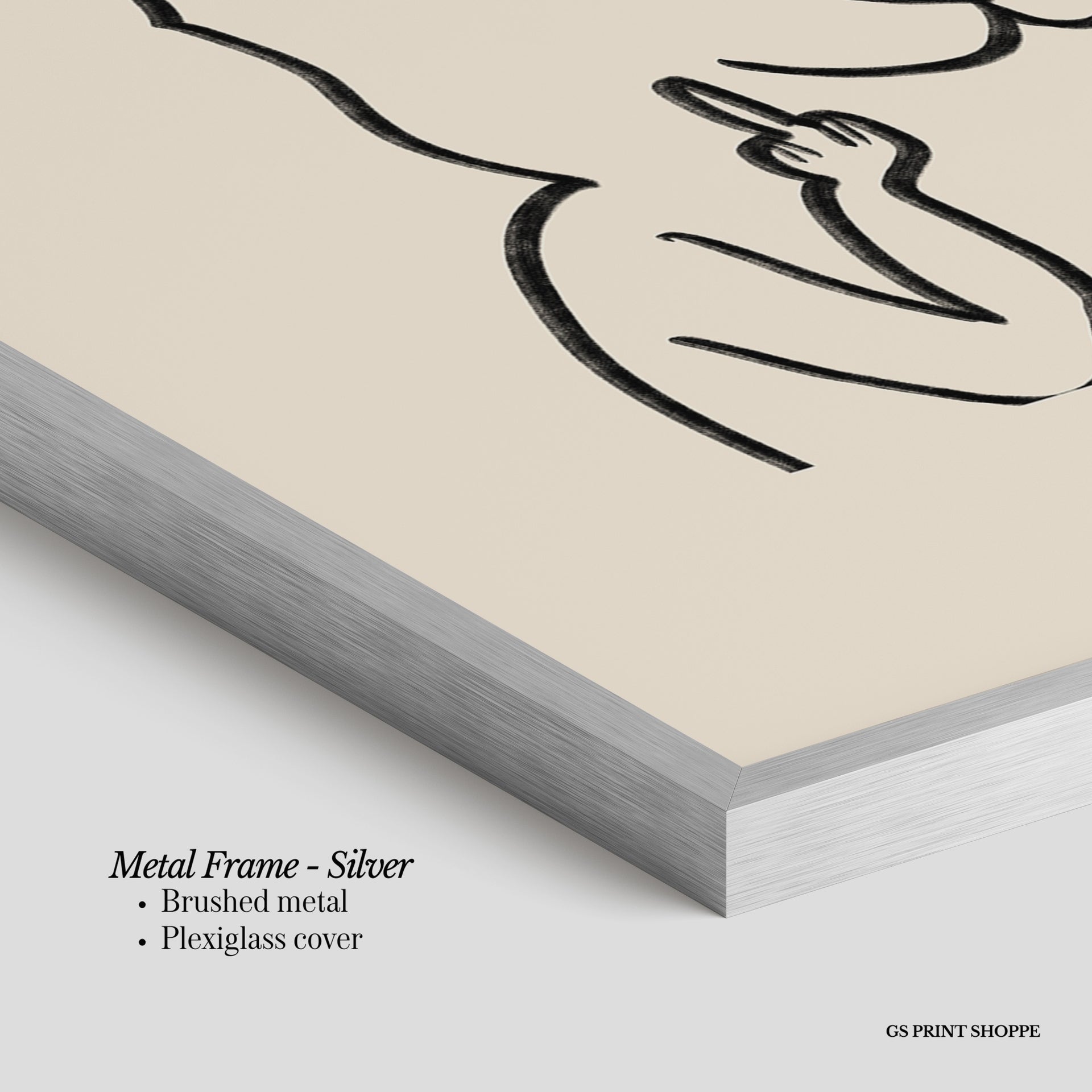 Metal Frame: Sleek and modern, our metal frame is crafted with brushed metal for a polished finish. It comes with durable plexiglass and sturdy metal hangers for horizontal or vertical display.