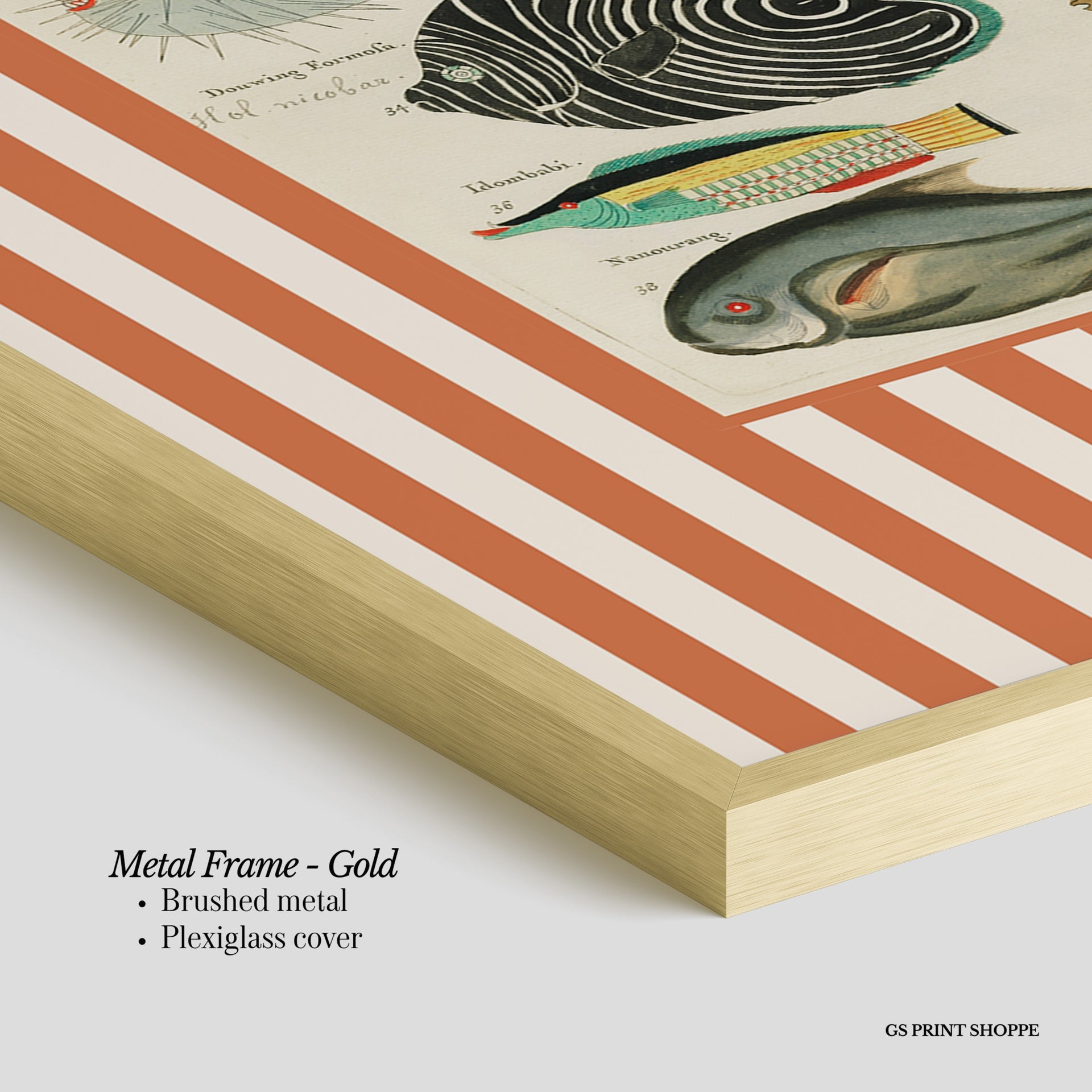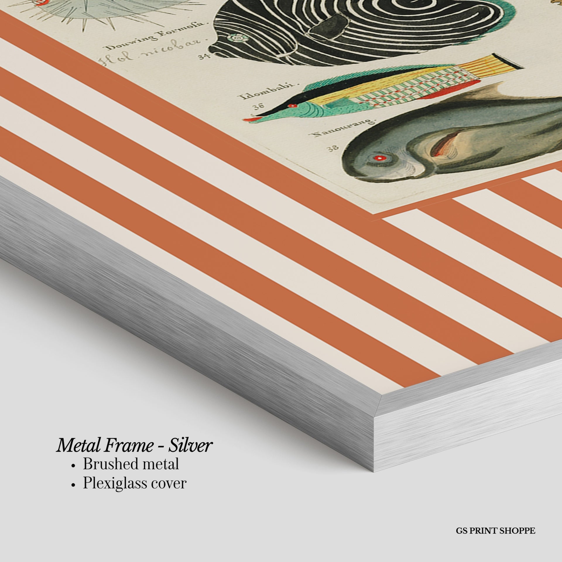 Metal Frame: Sleek and modern, our metal frame is crafted with brushed metal for a polished finish. It comes with durable plexiglass and sturdy metal hangers for horizontal or vertical display.