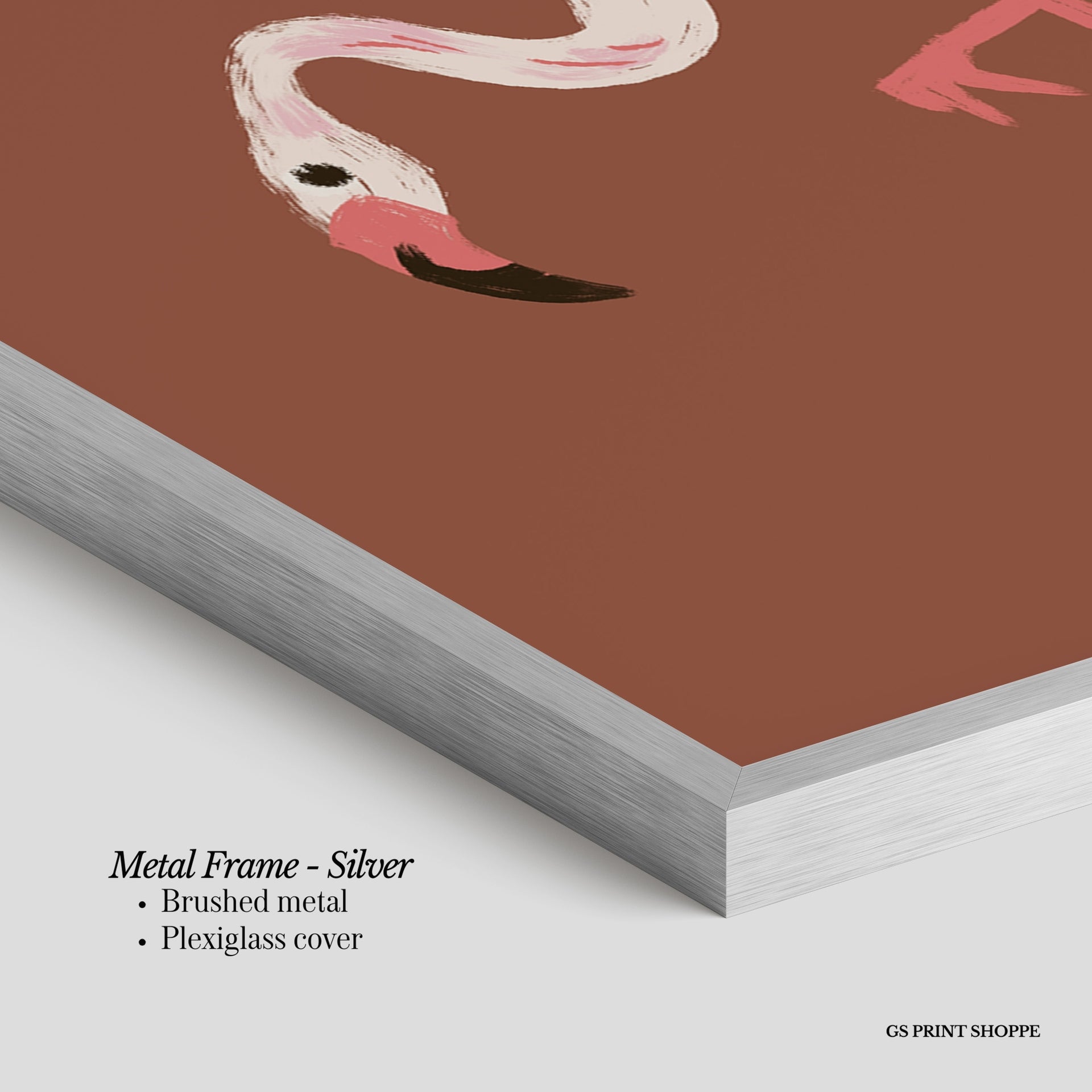 Metal Frame: Sleek and modern, our metal frame is crafted with brushed metal for a polished finish. It comes with durable plexiglass and sturdy metal hangers for horizontal or vertical display.