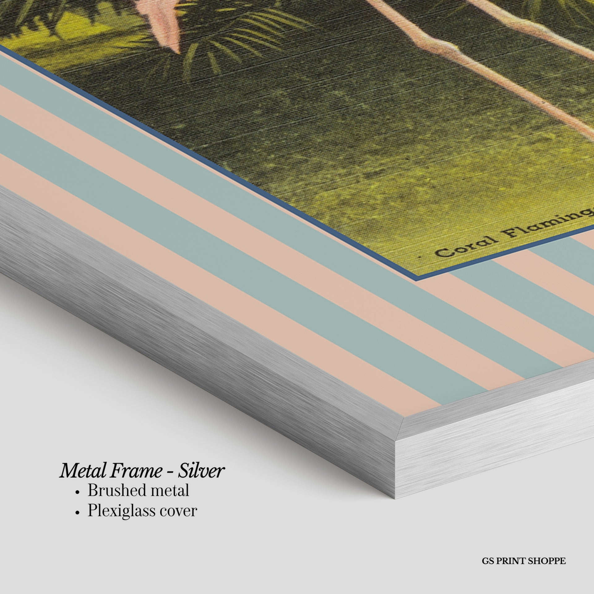 Metal Frame: Sleek and modern, our metal frame is crafted with brushed metal for a polished finish. It comes with durable plexiglass and sturdy metal hangers for horizontal or vertical display.