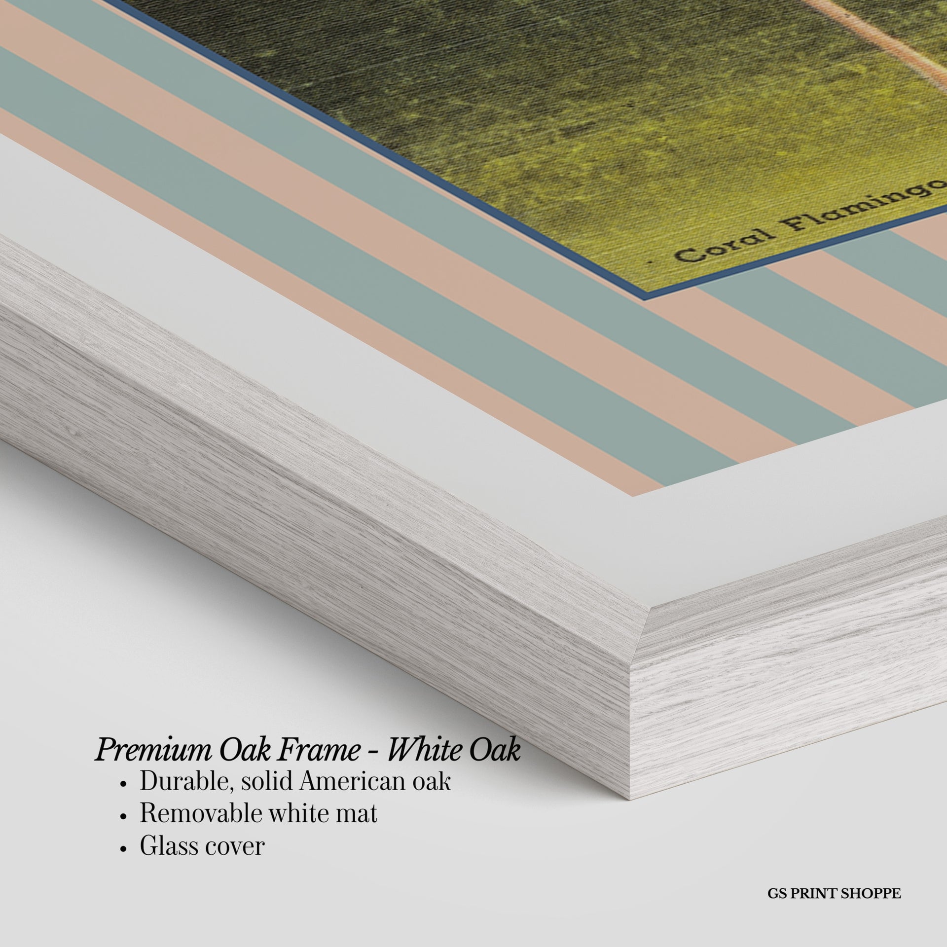 Premium Oak Frame: Our premium oak frame is crafted from solid American oak, offering a warm, natural feel with a high-end finish. We complete this elevated offering with a bright white removable mat and real glass for a versatile and polished look.