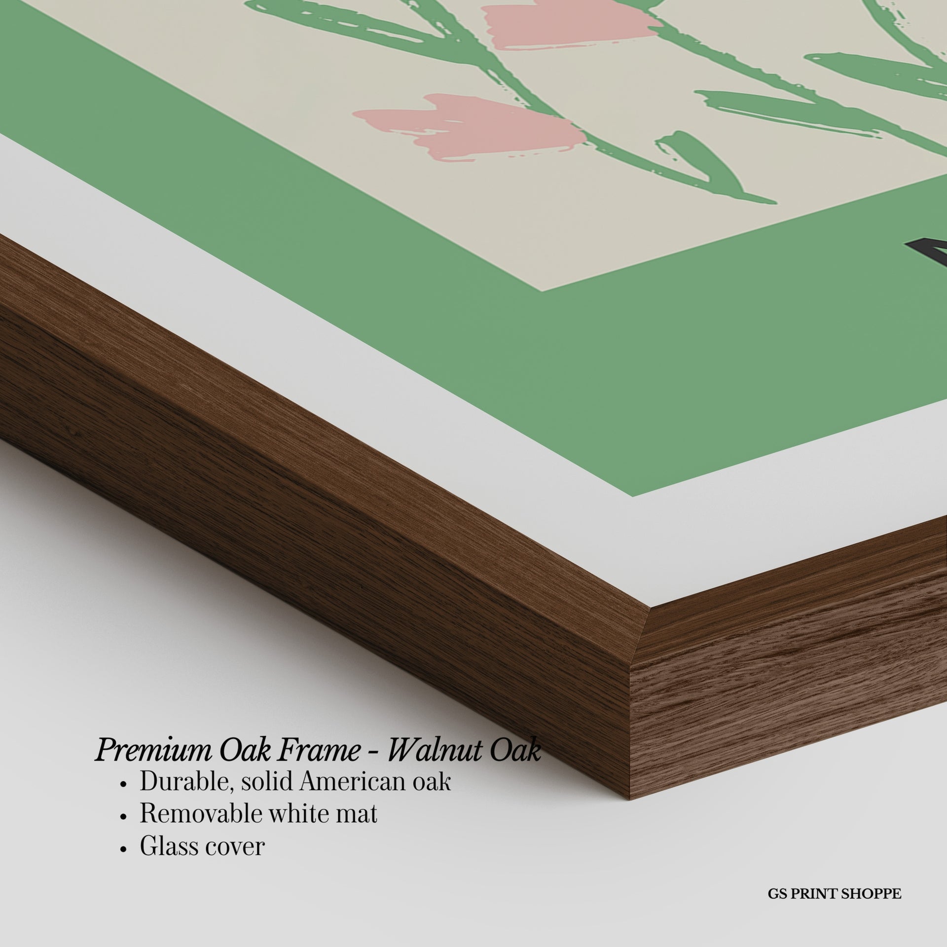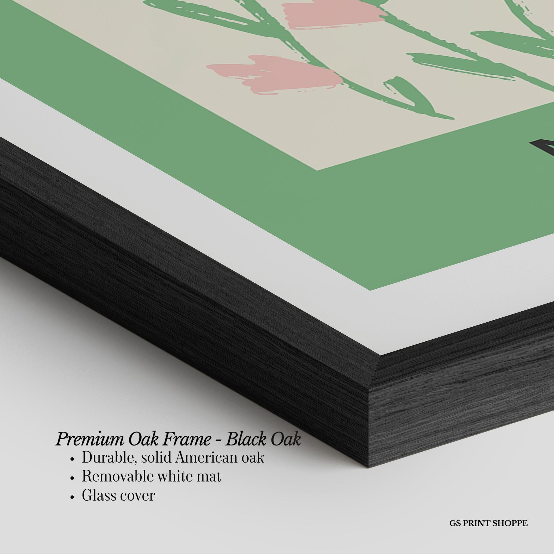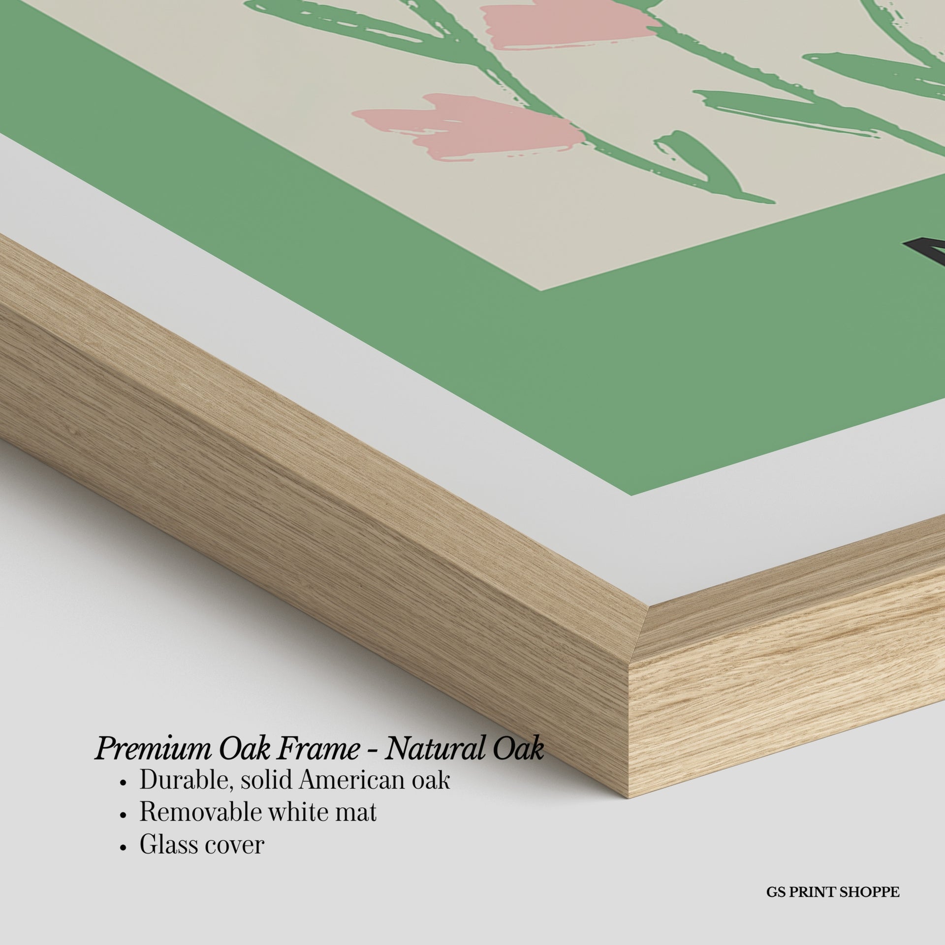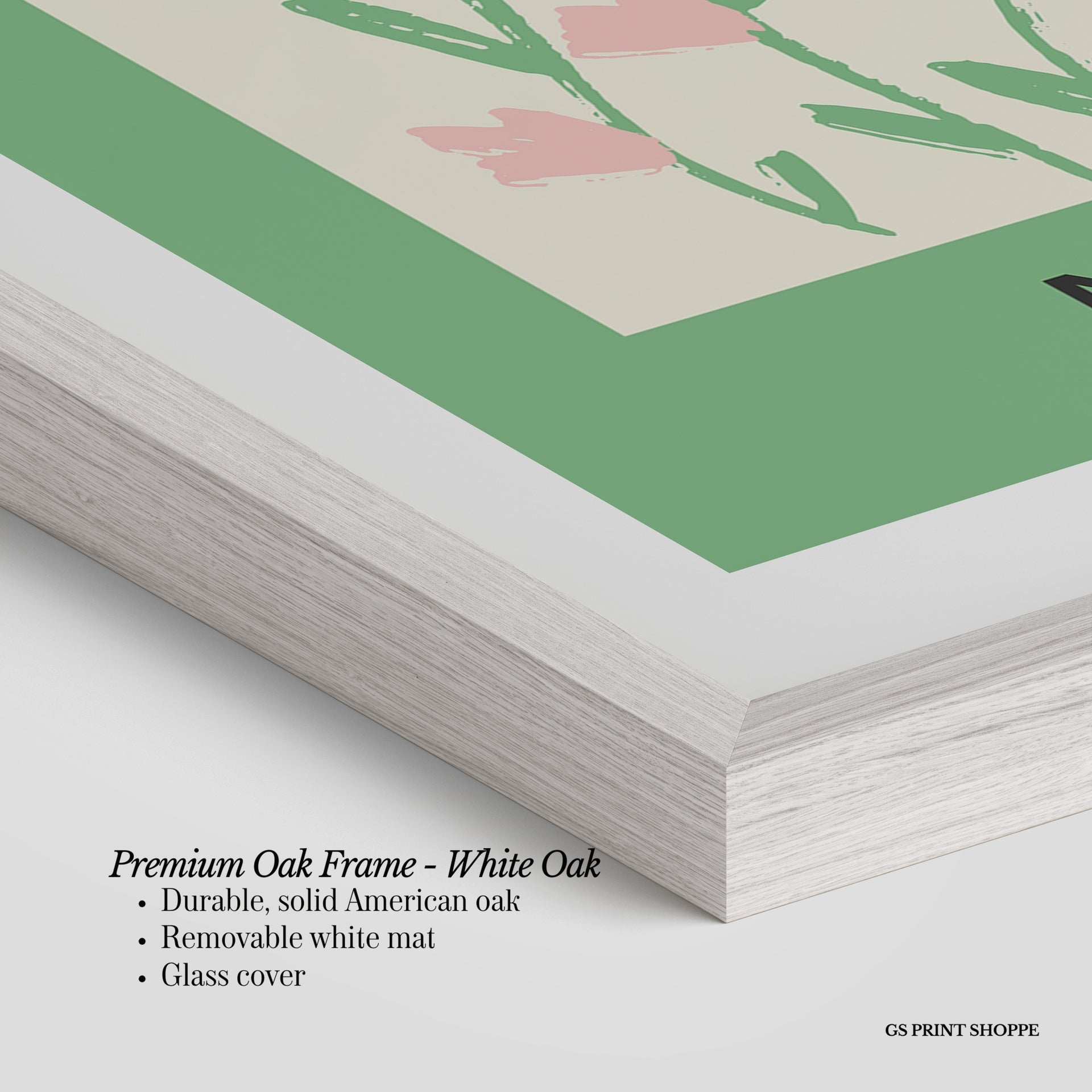 Premium Oak Frame: Our premium oak frame is crafted from solid American oak, offering a warm, natural feel with a high-end finish. We complete this elevated offering with a bright white removable mat and real glass for a versatile and polished look.