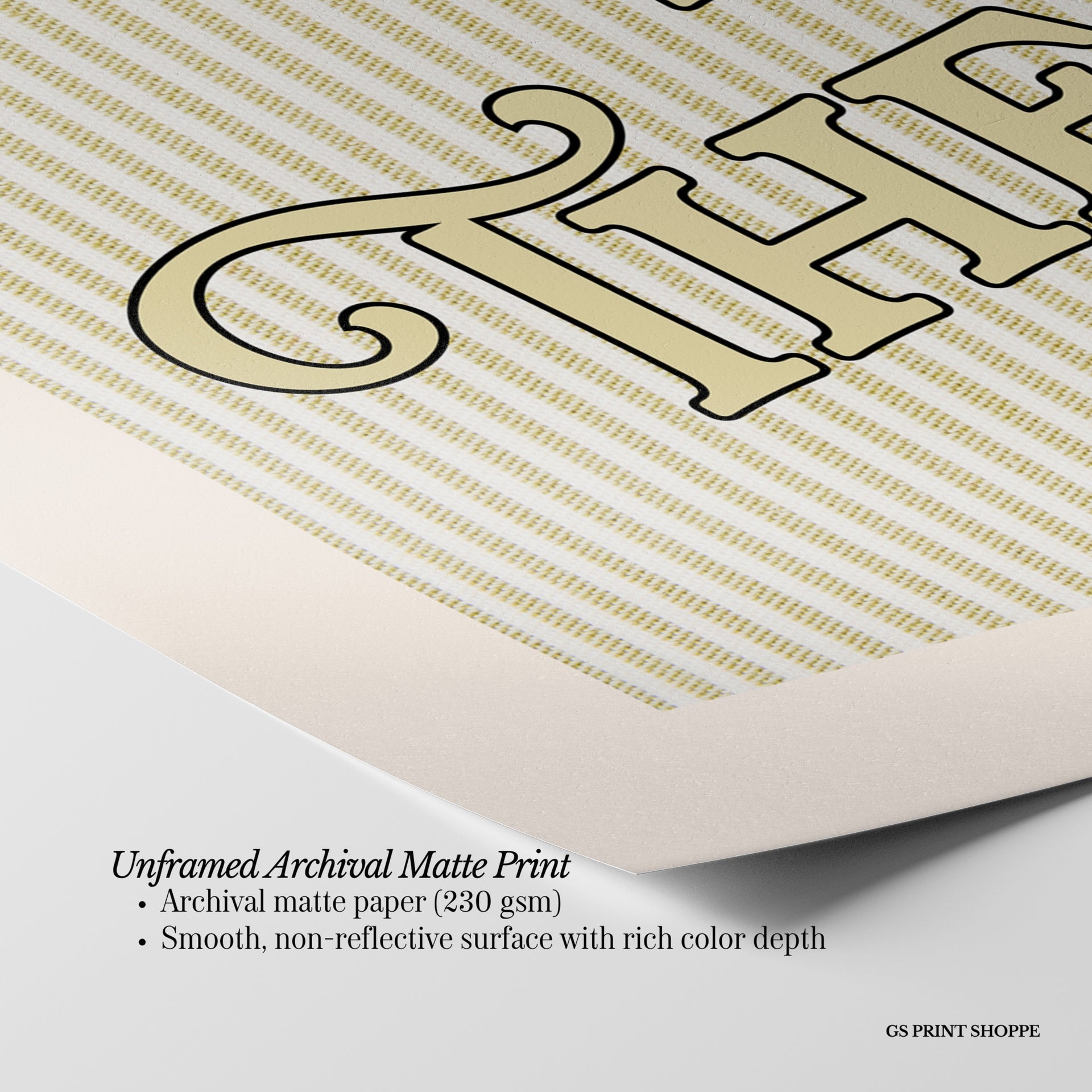 Unframed: This print is professionally printed on archival matte paper (230 gsm), a smooth, acid-free paper with a non-reflective finish. It will be carefully packaged to arrive safely at your door.