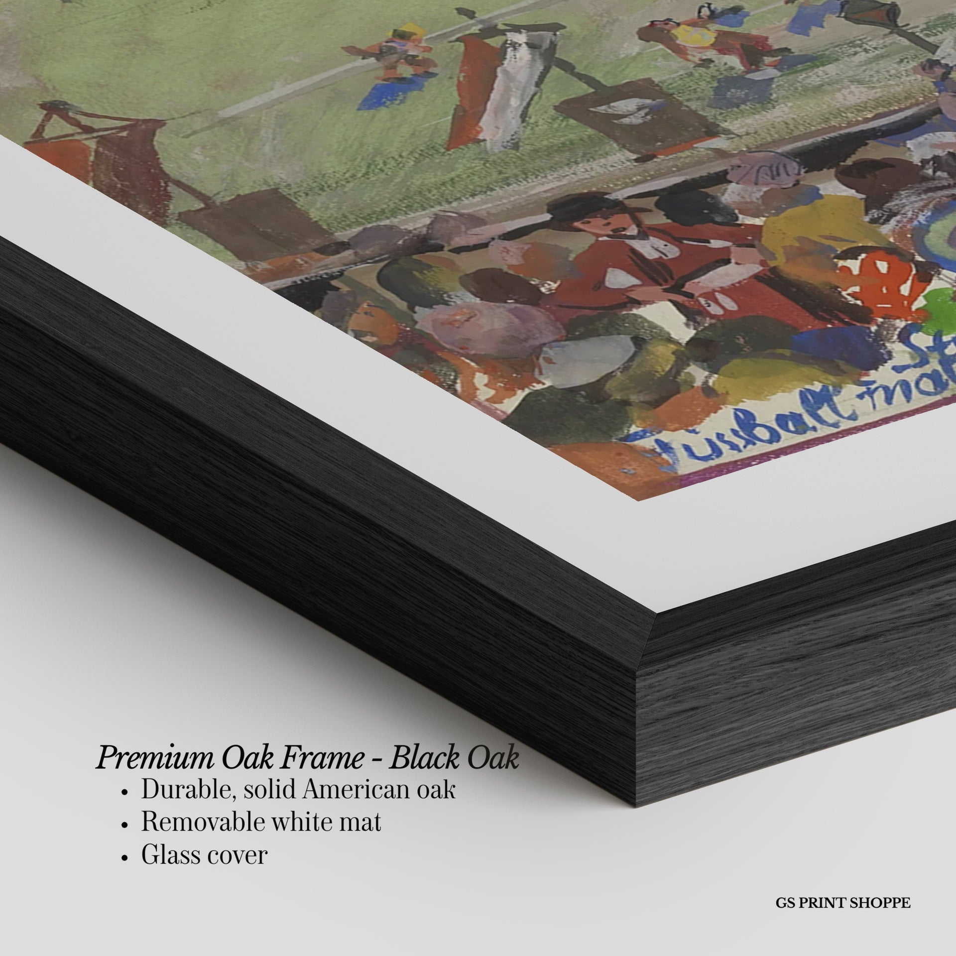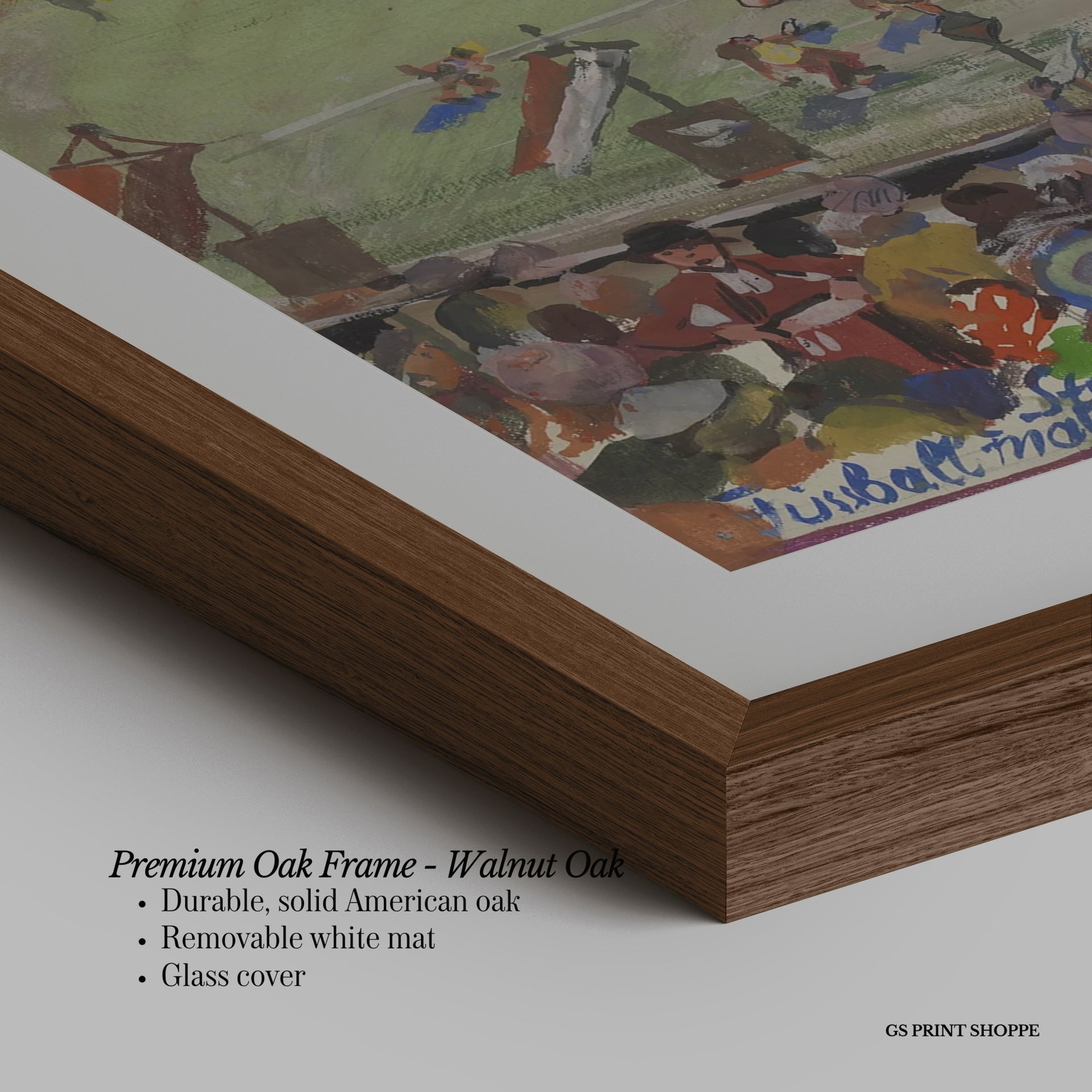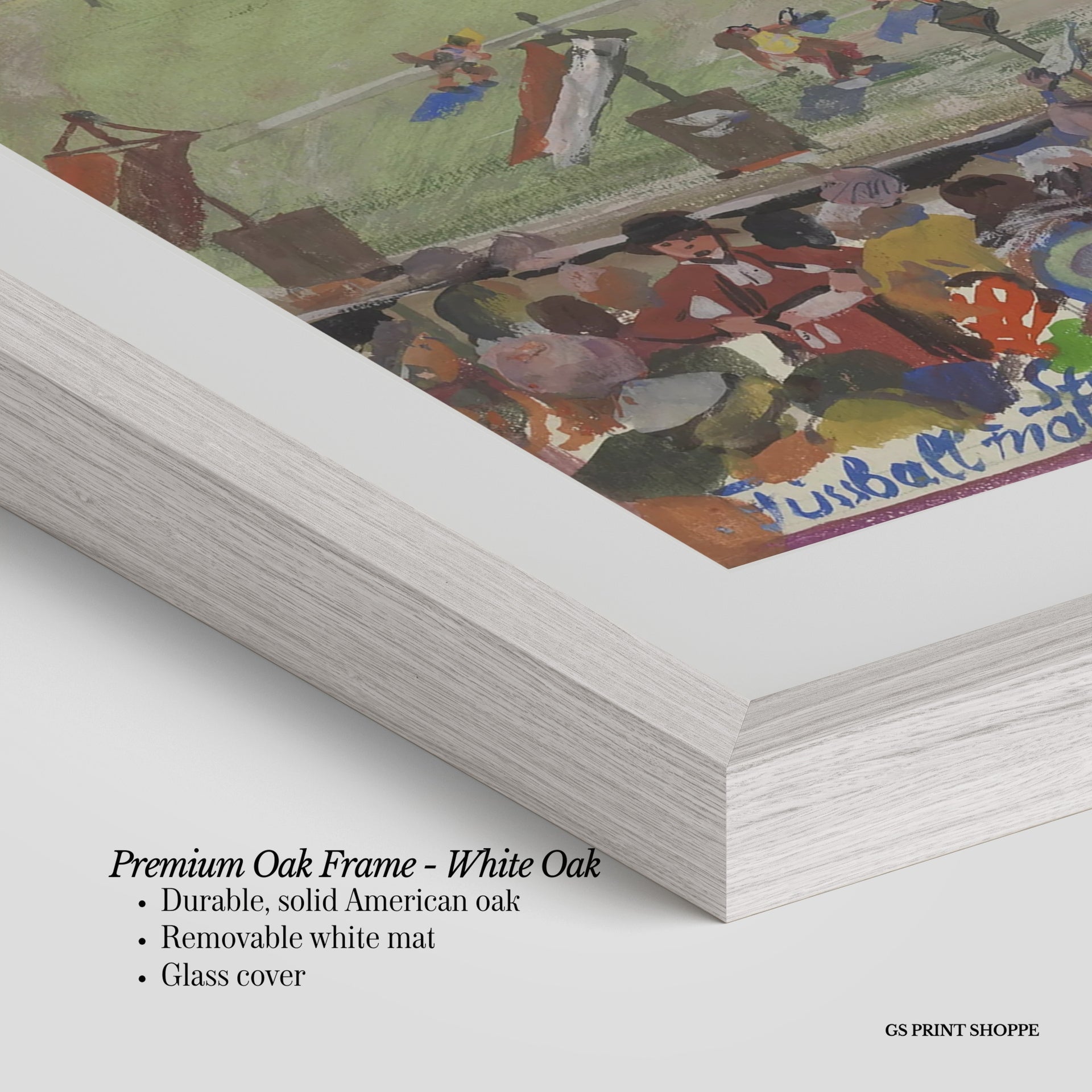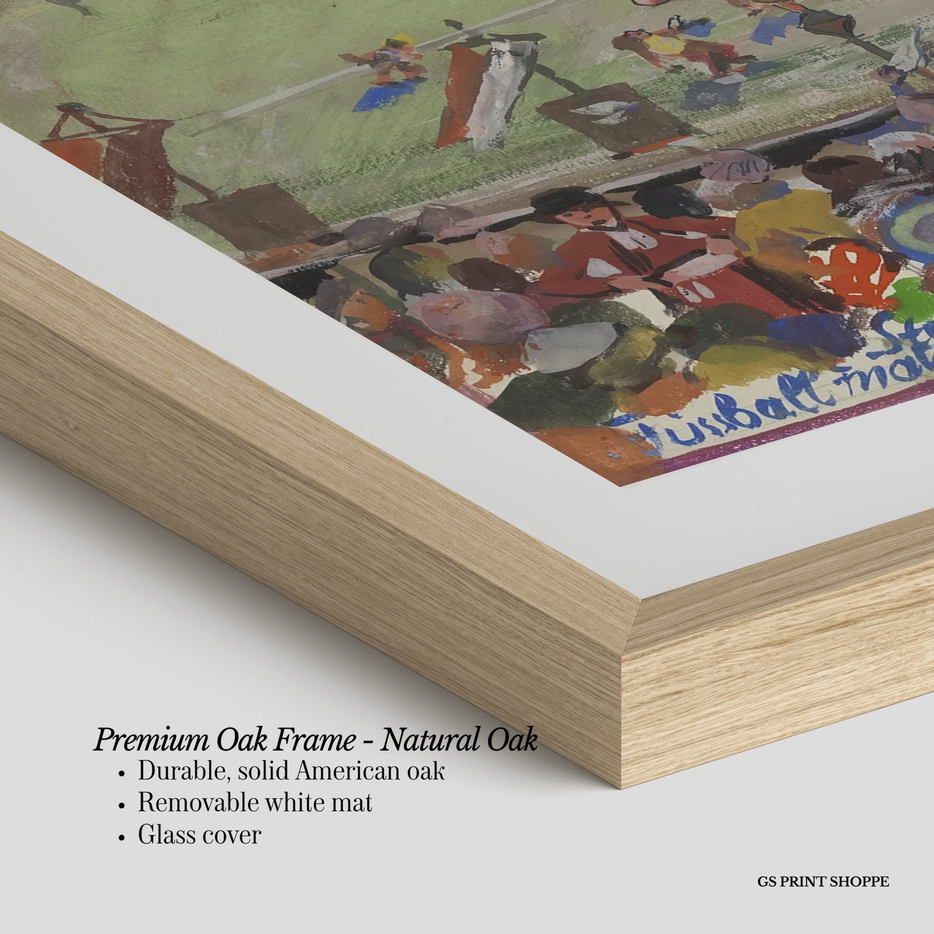Premium Oak Frame: Our premium oak frame is crafted from solid American oak, offering a warm, natural feel with a high-end finish. We complete this elevated offering with a bright white removable mat and real glass for a versatile and polished look.