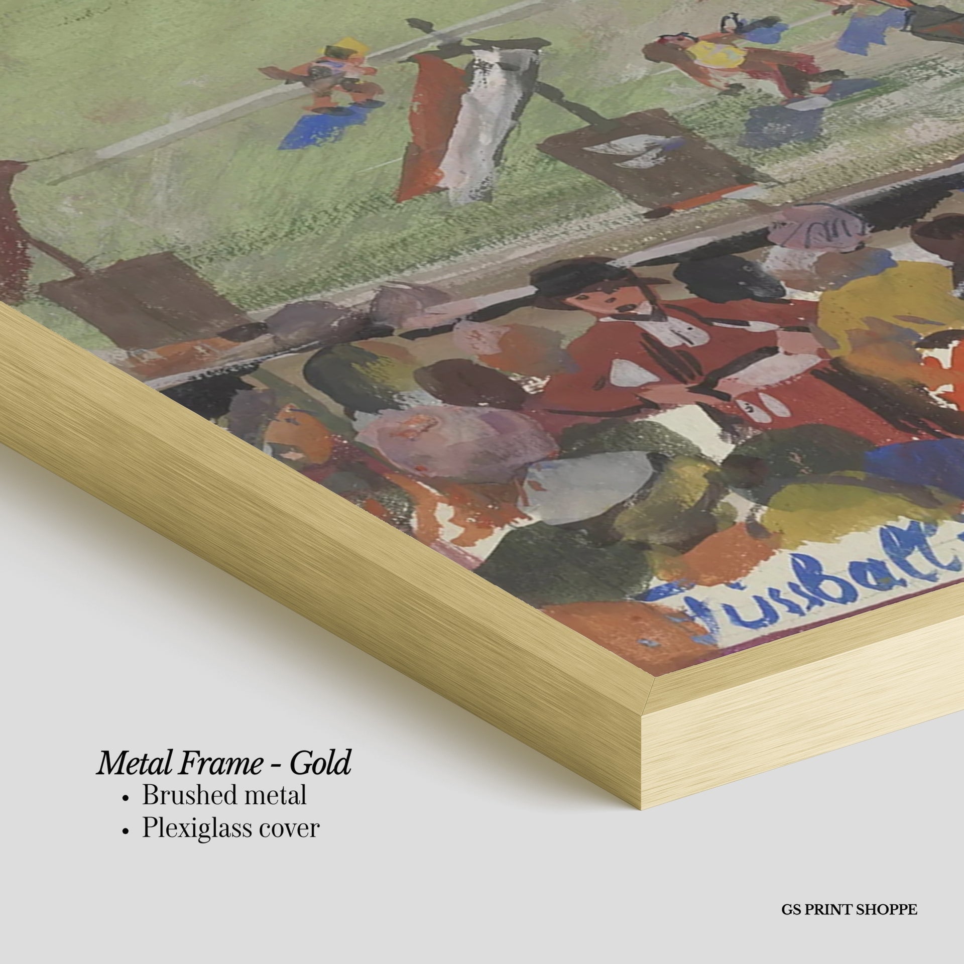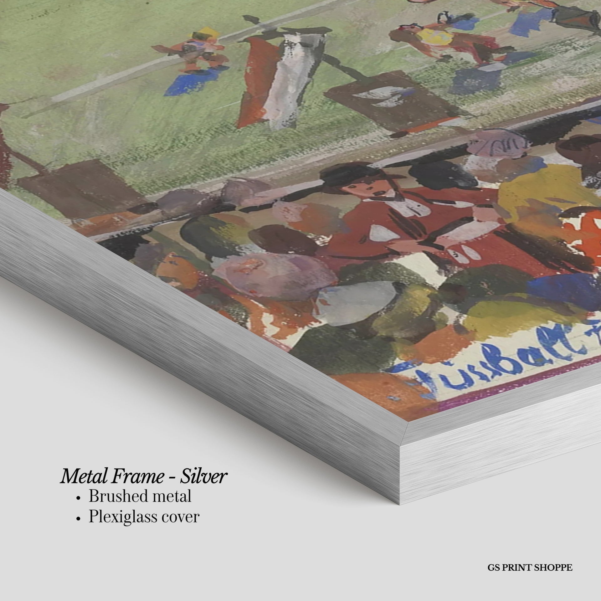 Metal Frame: Sleek and modern, our metal frame is crafted with brushed metal for a polished finish. It comes with durable plexiglass and sturdy metal hangers for horizontal or vertical display.