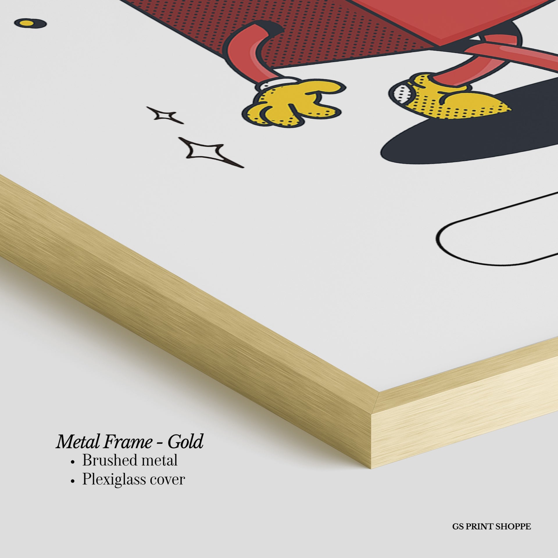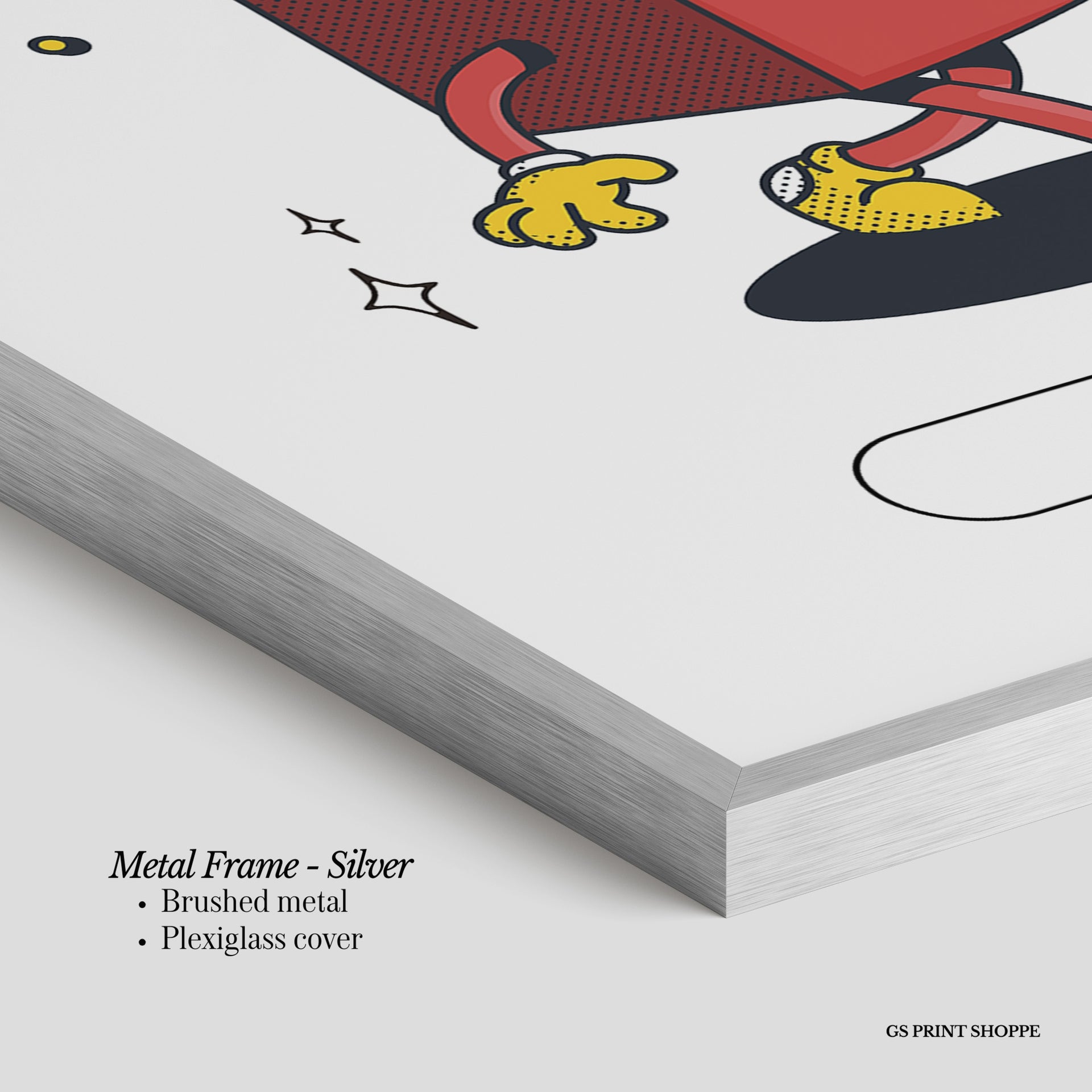 Metal Frame: Sleek and modern, our metal frame is crafted with brushed metal for a polished finish. It comes with durable plexiglass and sturdy metal hangers for horizontal or vertical display.