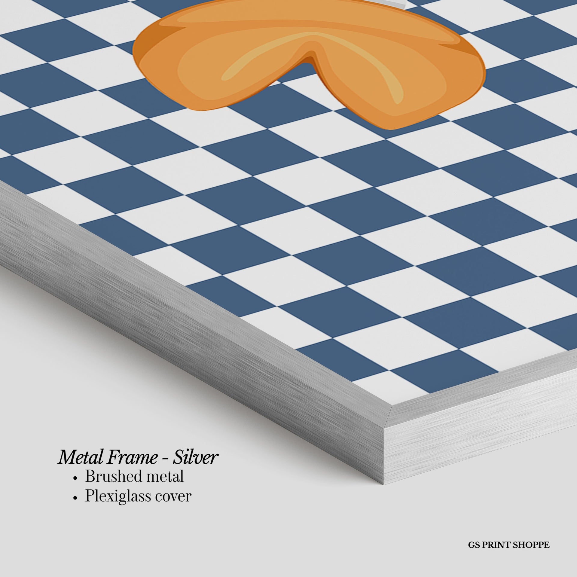 Metal Frame: Sleek and modern, our metal frame is crafted with brushed metal for a polished finish. It comes with durable plexiglass and sturdy metal hangers for horizontal or vertical display.