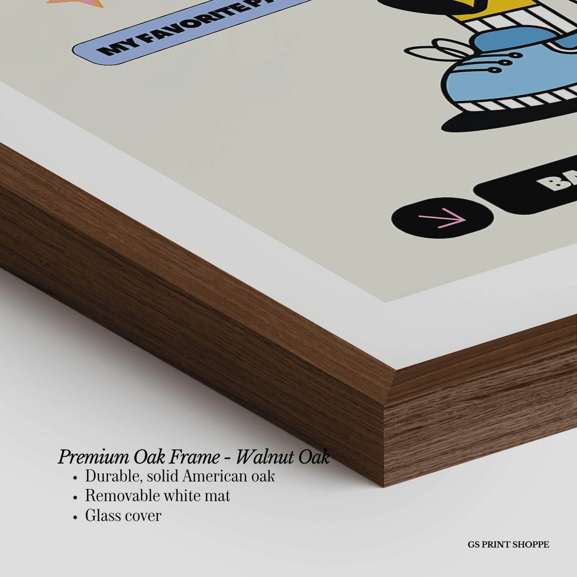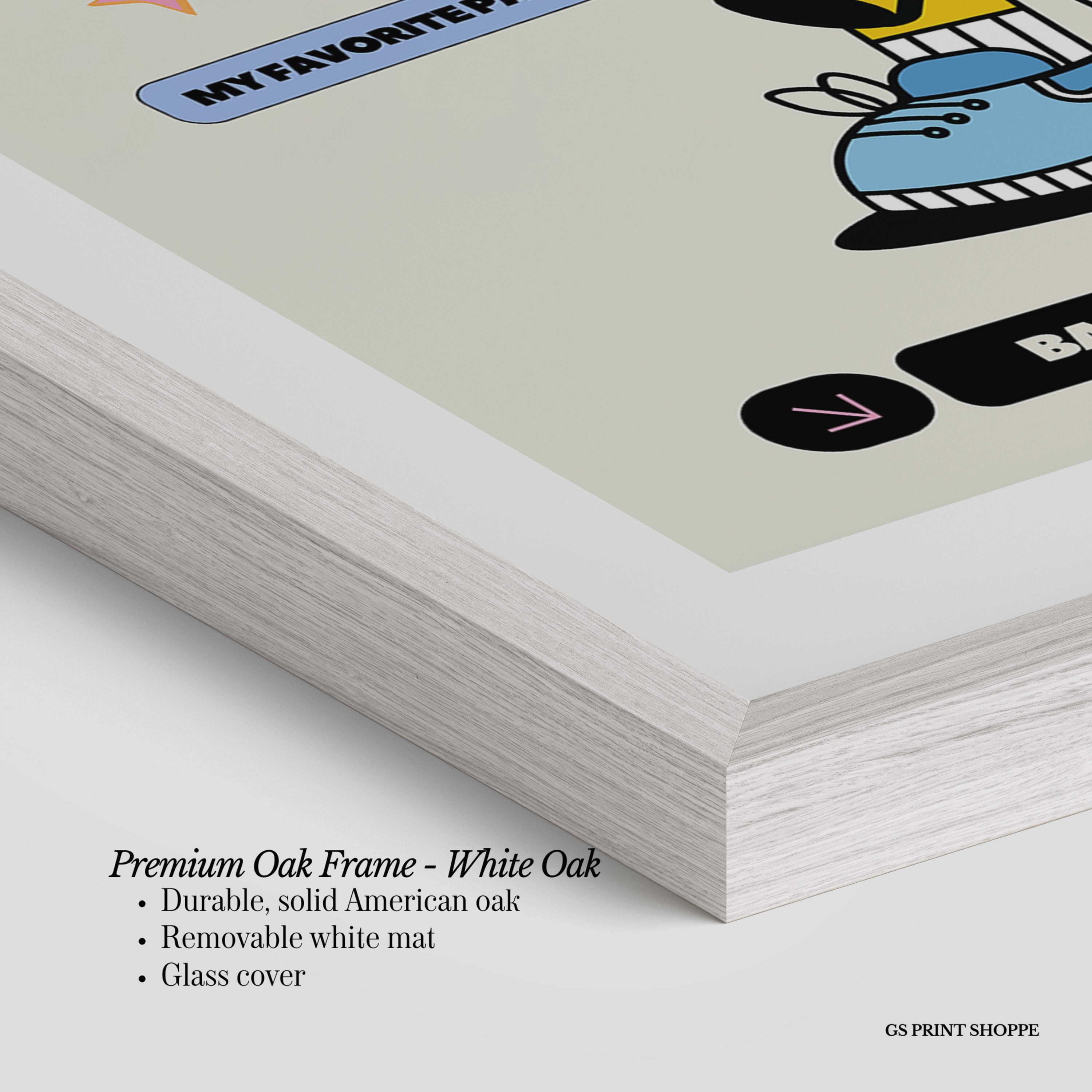 Premium Oak Frame: Our premium oak frame is crafted from solid American oak, offering a warm, natural feel with a high-end finish. We complete this elevated offering with a bright white removable mat and real glass for a versatile and polished look.