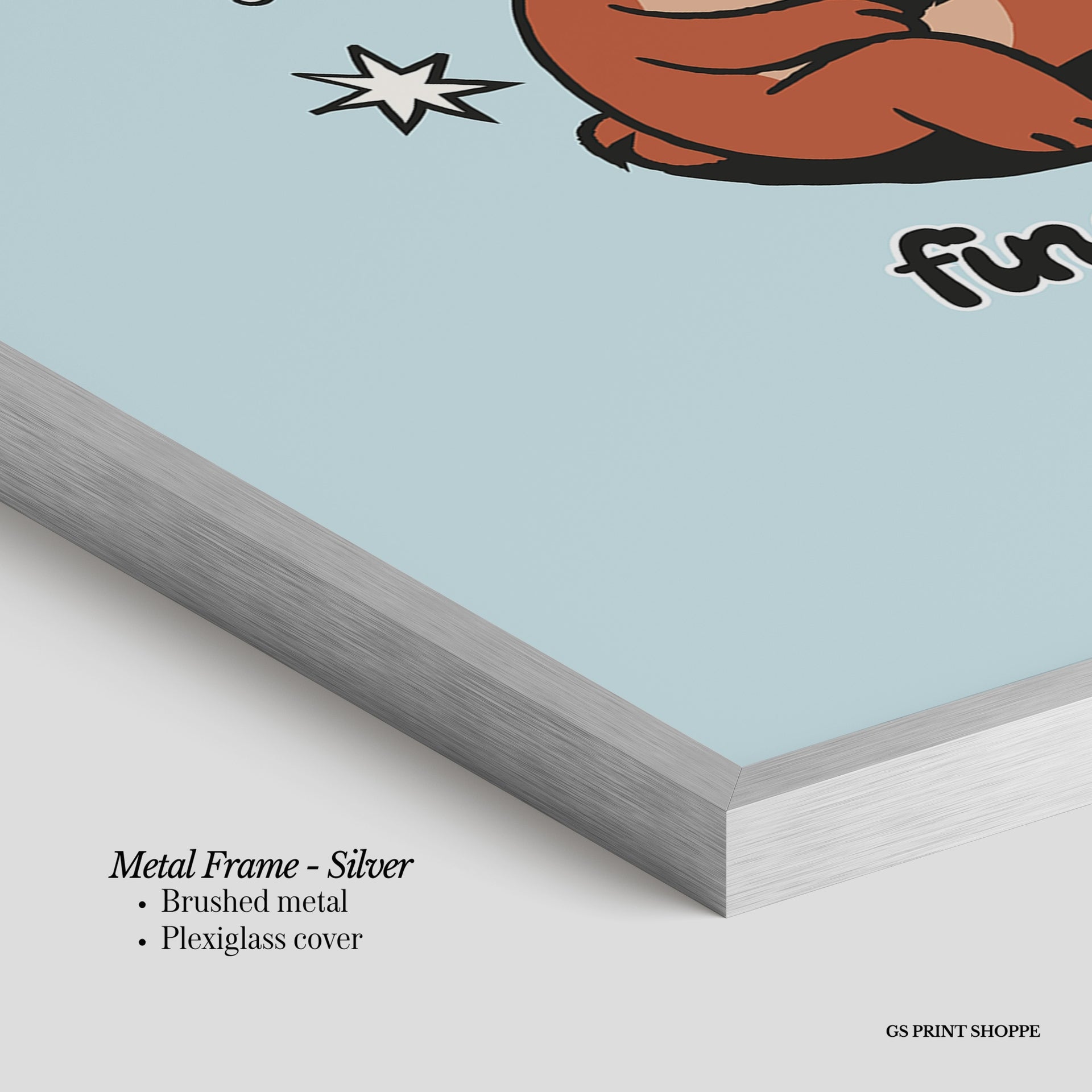 Metal Frame: Sleek and modern, our metal frame is crafted with brushed metal for a polished finish. It comes with durable plexiglass and sturdy metal hangers for horizontal or vertical display.