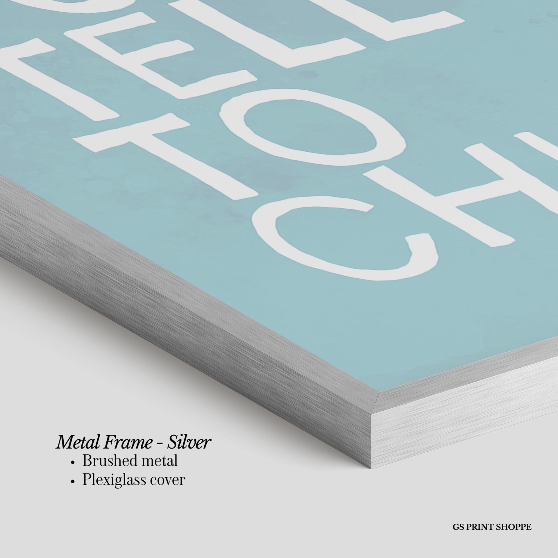 Metal Frame: Sleek and modern, our metal frame is crafted with brushed metal for a polished finish. It comes with durable plexiglass and sturdy metal hangers for horizontal or vertical display.