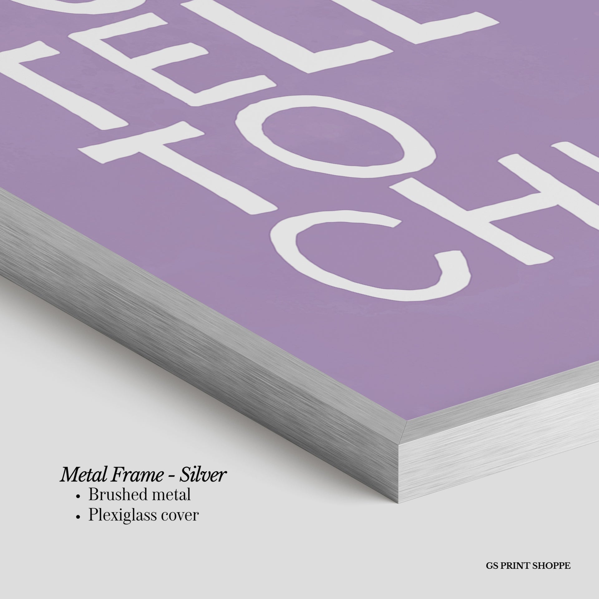 Metal Frame: Sleek and modern, our metal frame is crafted with brushed metal for a polished finish. It comes with durable plexiglass and sturdy metal hangers for horizontal or vertical display.