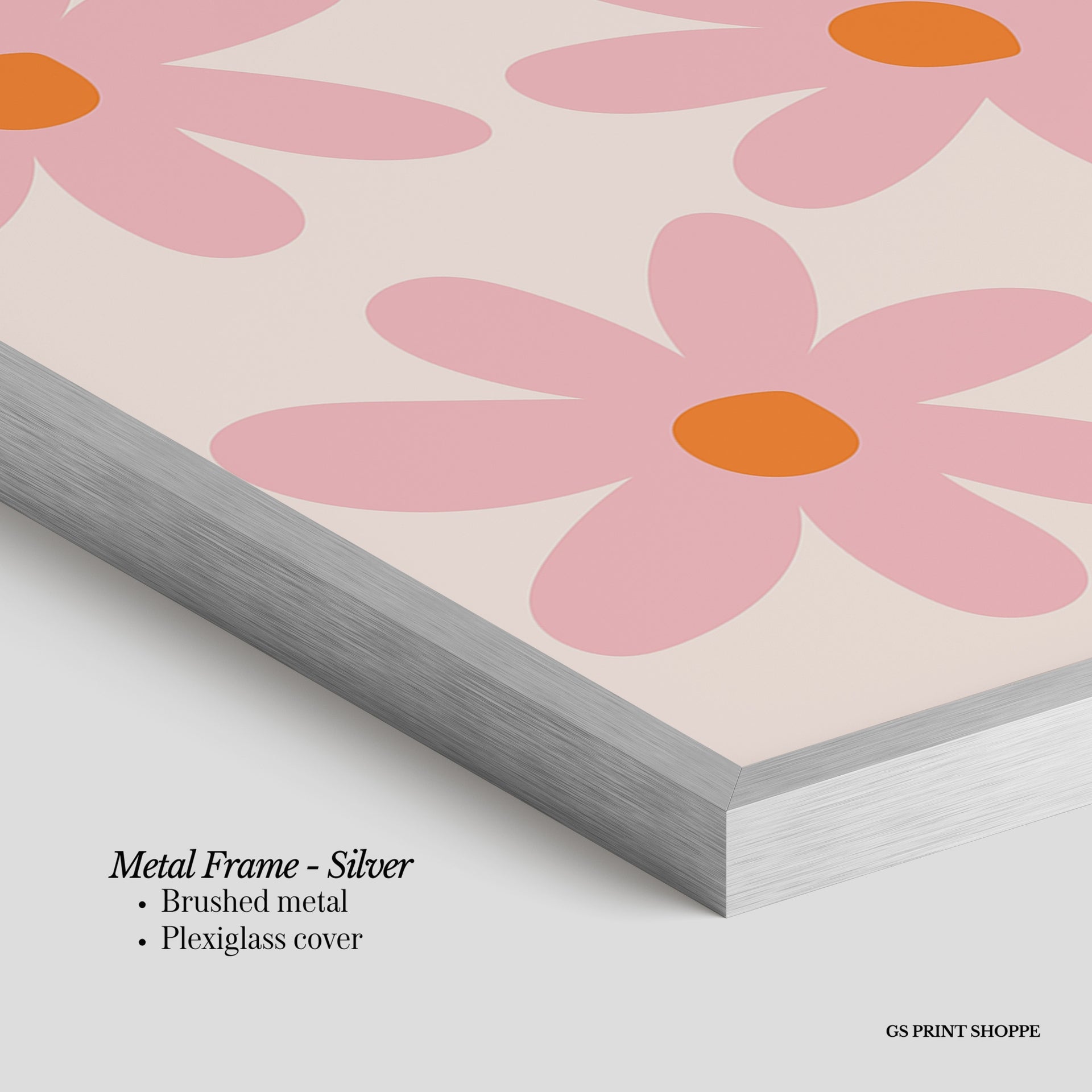 Metal Frame: Sleek and modern, our metal frame is crafted with brushed metal for a polished finish. It comes with durable plexiglass and sturdy metal hangers for horizontal or vertical display.