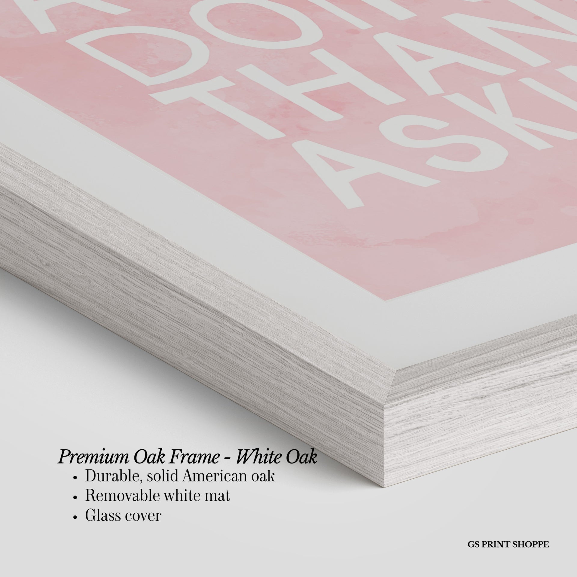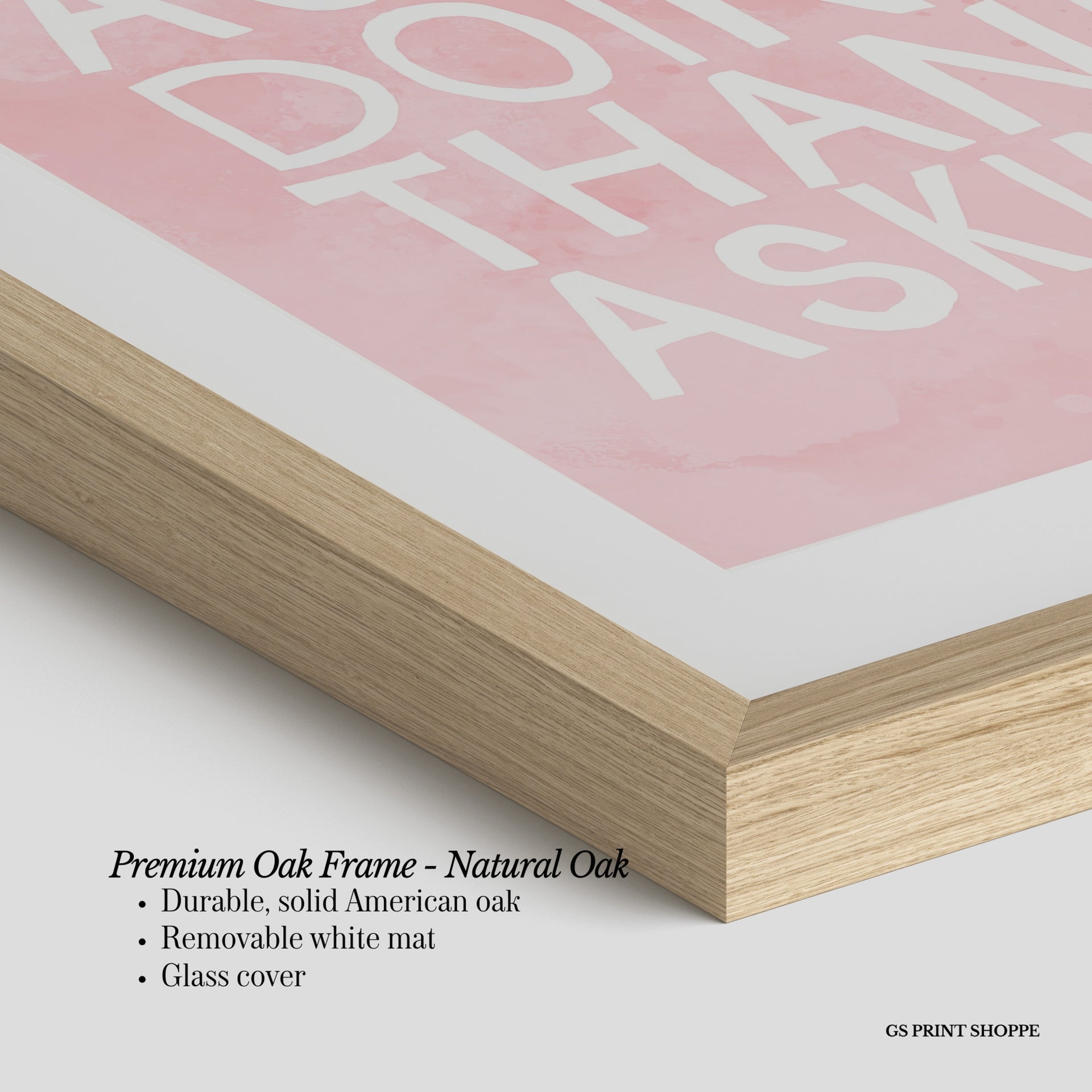 Premium Oak Frame: Our premium oak frame is crafted from solid American oak, offering a warm, natural feel with a high-end finish. We complete this elevated offering with a bright white removable mat and real glass for a versatile and polished look.