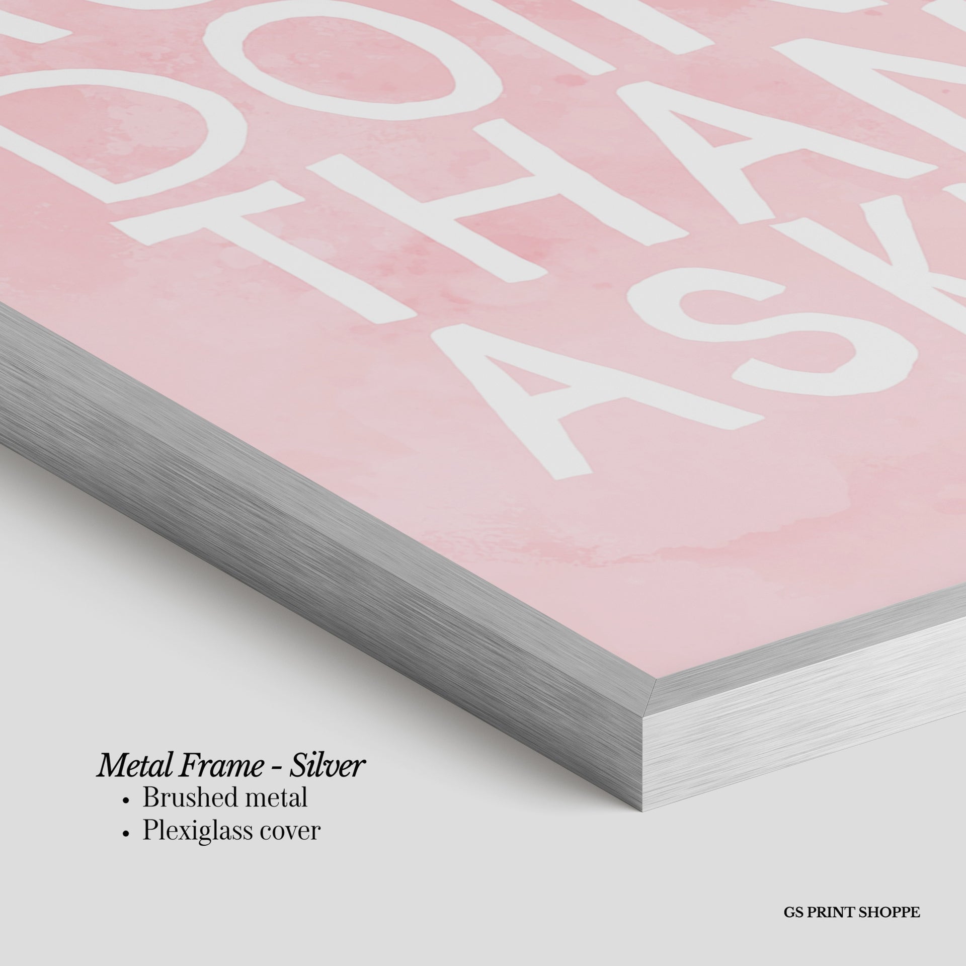 Metal Frame: Sleek and modern, our metal frame is crafted with brushed metal for a polished finish. It comes with durable plexiglass and sturdy metal hangers for horizontal or vertical display.