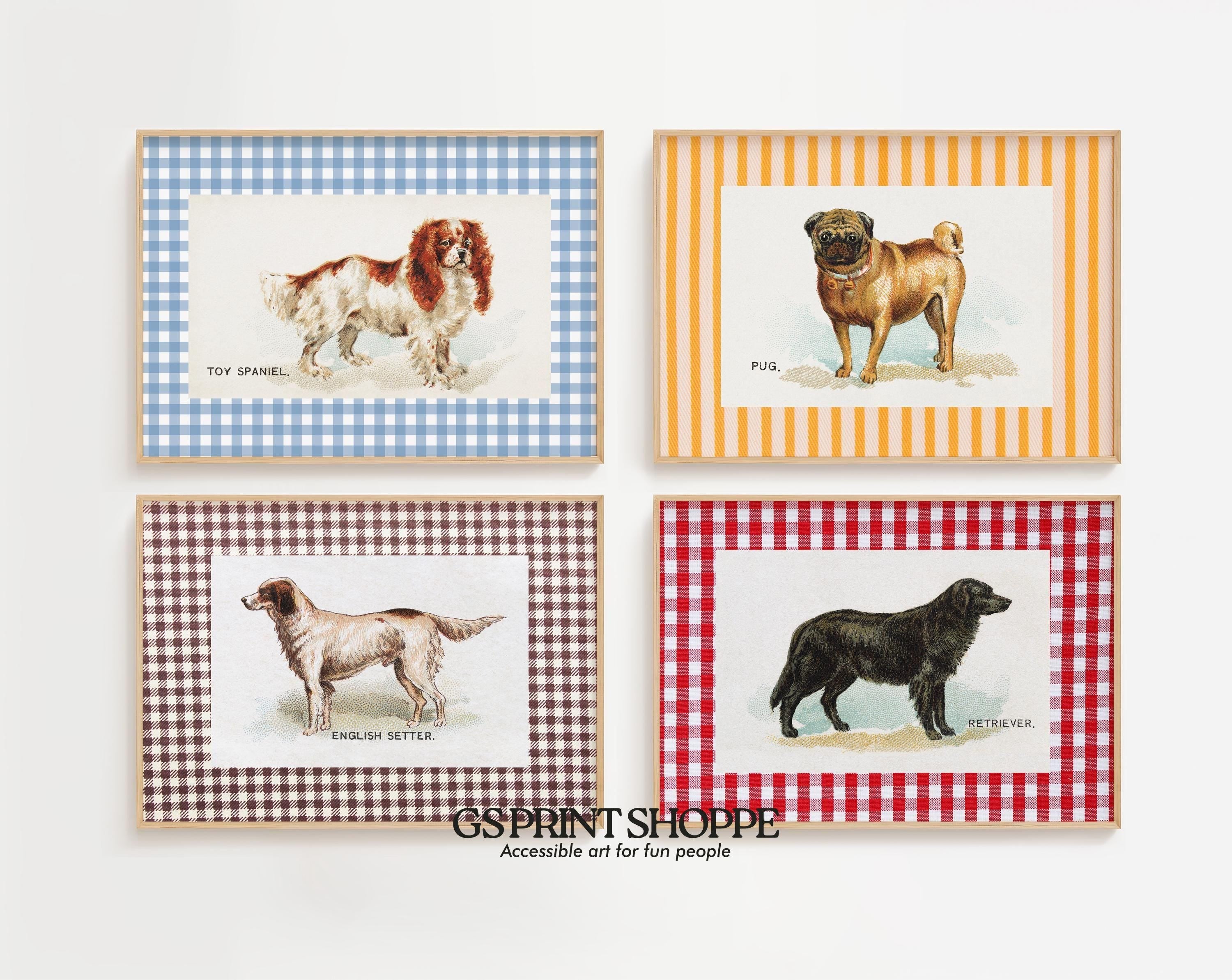 Set of 4 Vintage Dog Digital Art Prints