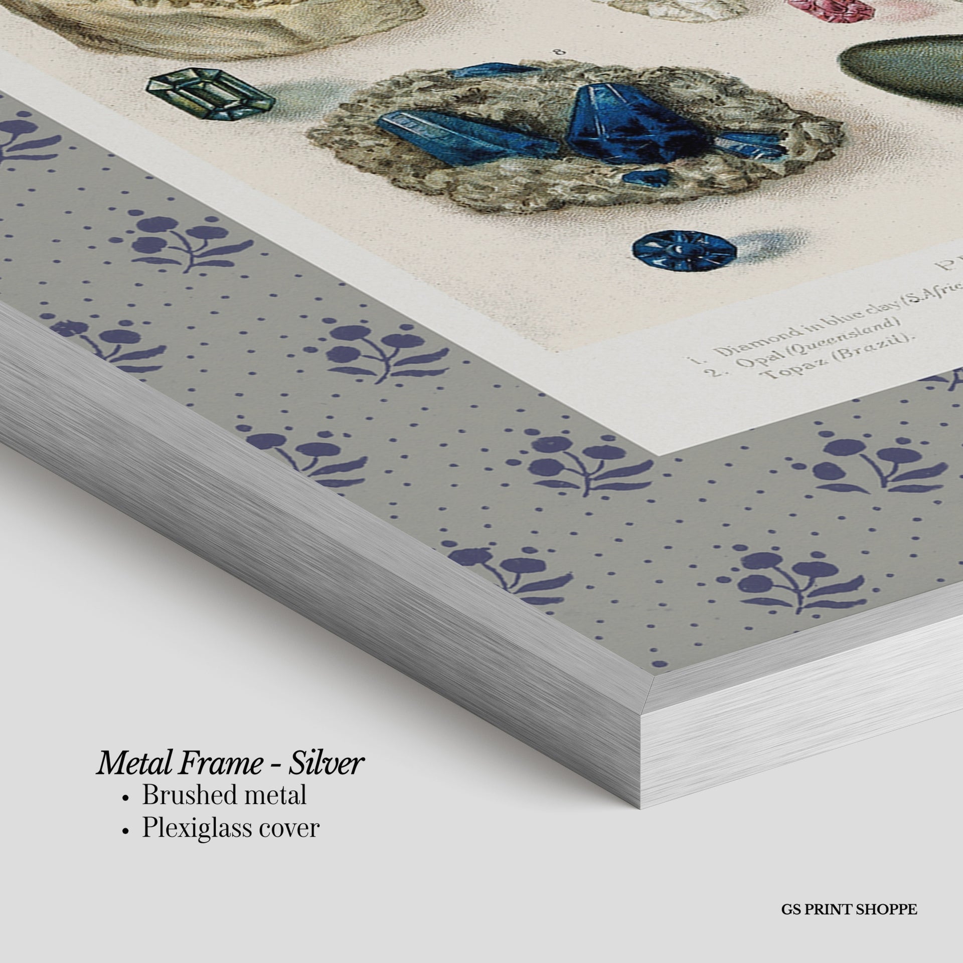 Metal Frame: Sleek and modern, our metal frame is crafted with brushed metal for a polished finish. It comes with durable plexiglass and sturdy metal hangers for horizontal or vertical display.