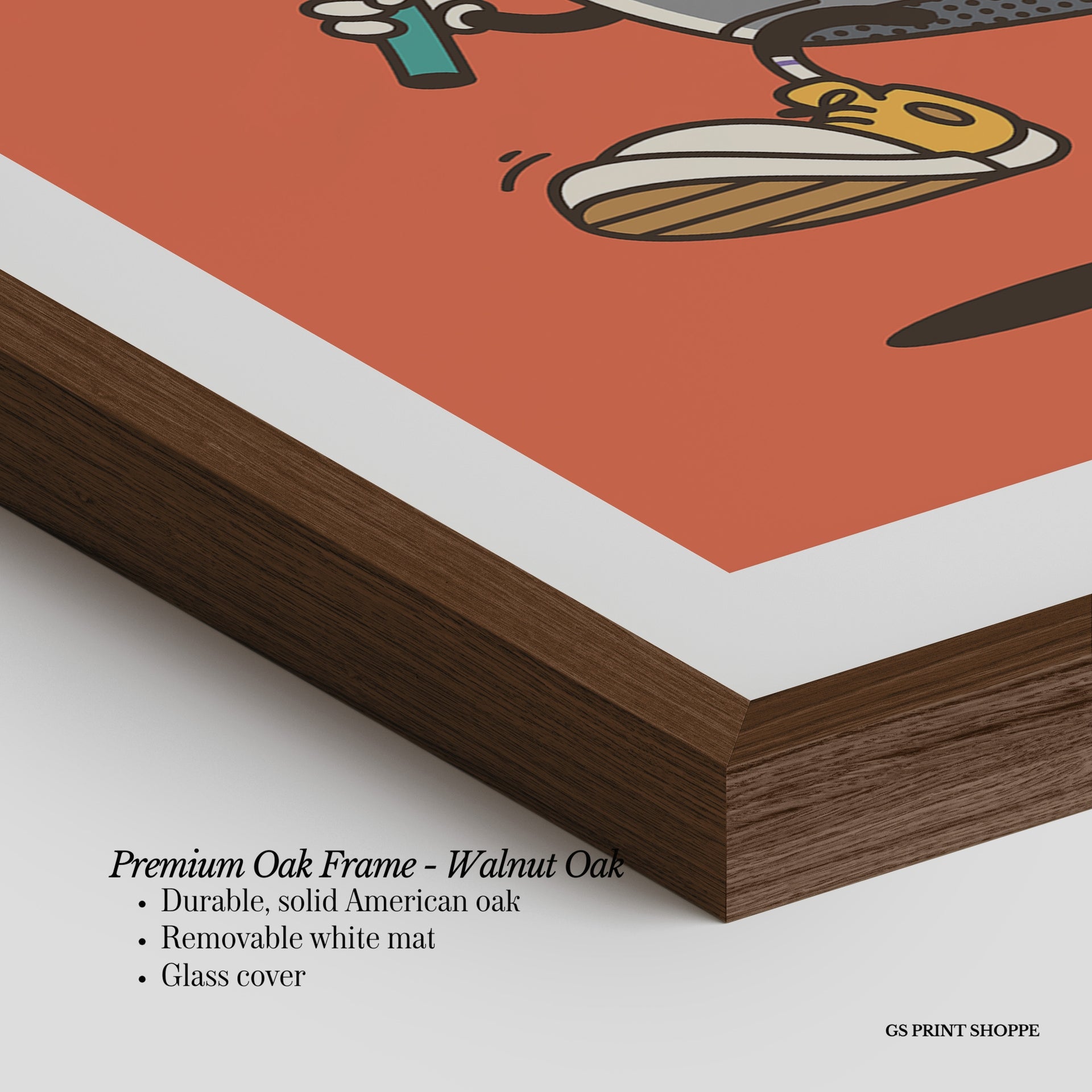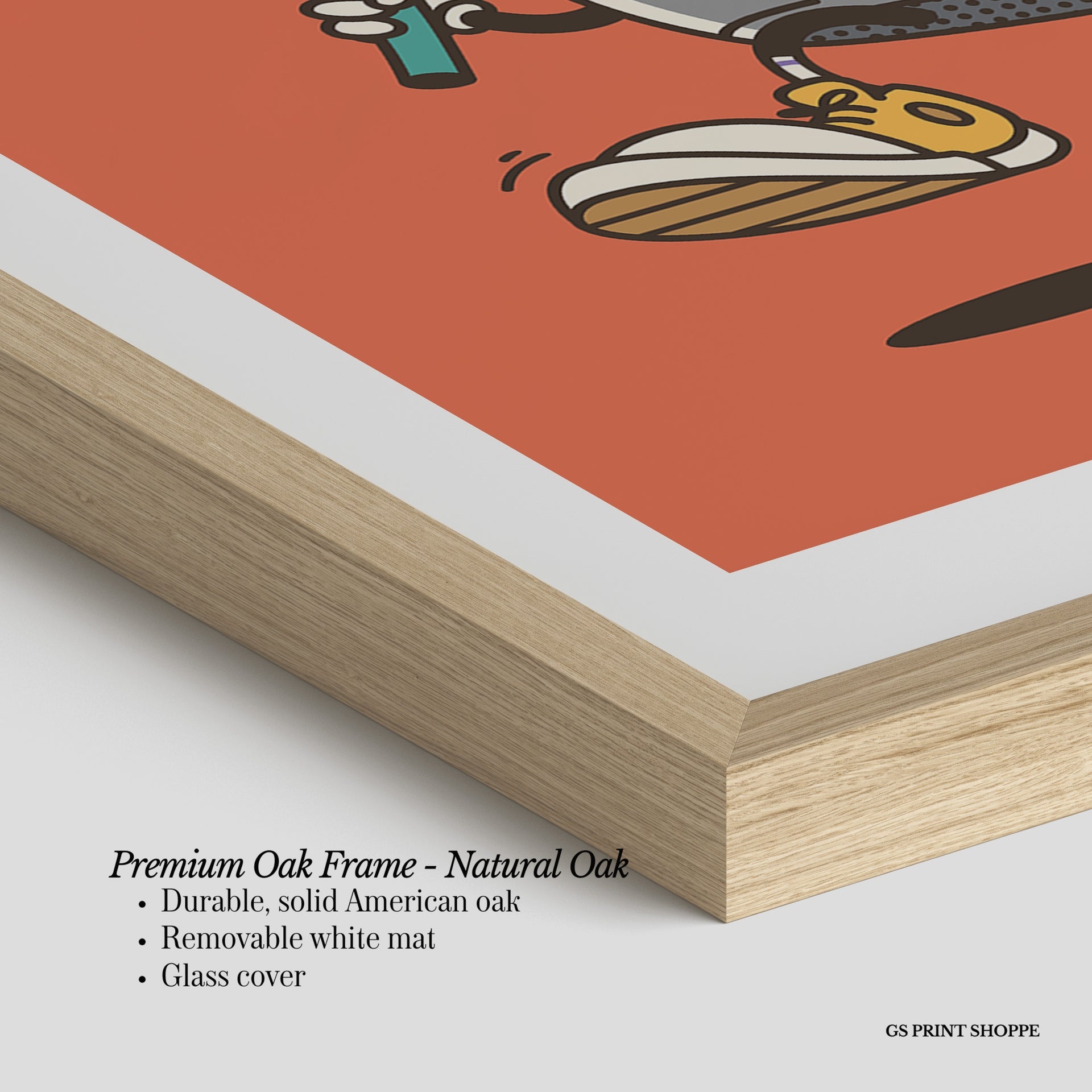 Oak Frame: Our solid oak frame blends durability with timeless appeal. Made from American oak, it features a smooth finish and plexiglass for long-lasting quality.