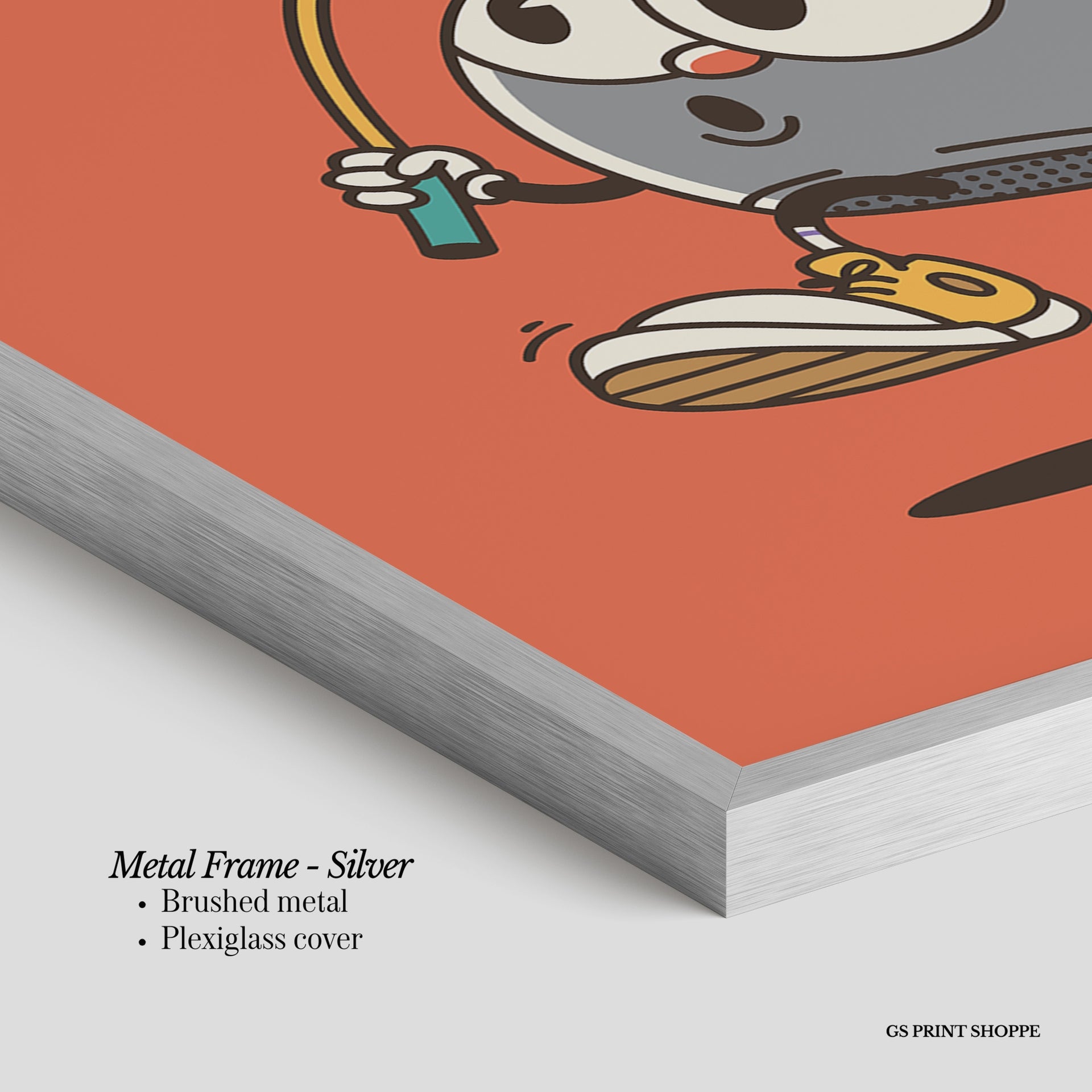 Metal Frame: Sleek and modern, our metal frame is crafted with brushed metal for a polished finish. It comes with durable plexiglass and sturdy metal hangers for horizontal or vertical display.