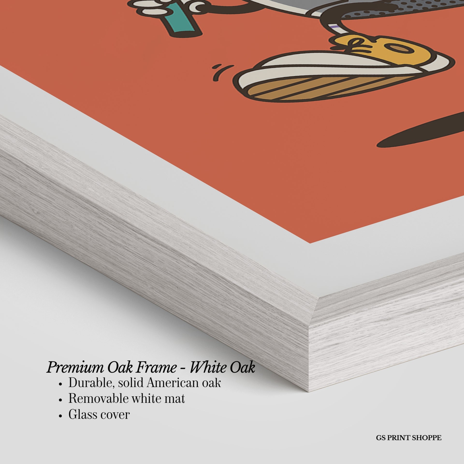 Premium Oak Frame: Our premium oak frame is crafted from solid American oak, offering a warm, natural feel with a high-end finish. We complete this elevated offering with a bright white removable mat and real glass for a versatile and polished look.