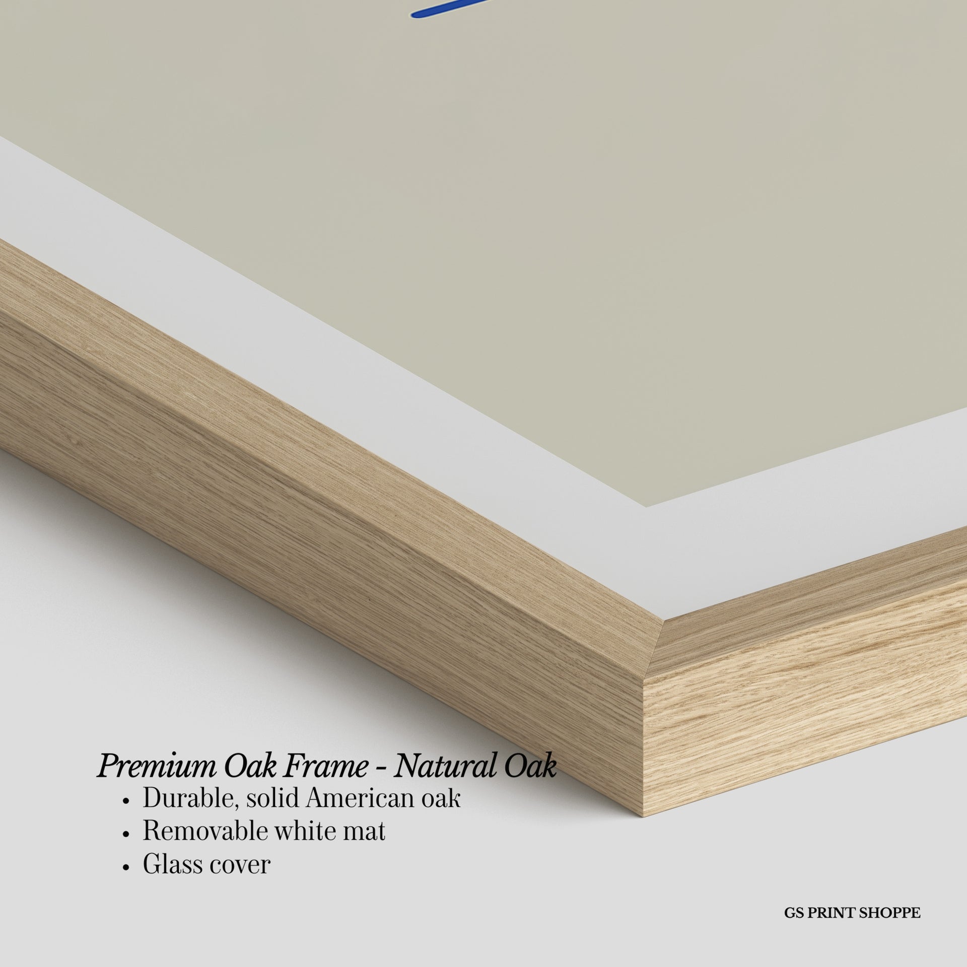 Premium Oak Frame: Our premium oak frame is crafted from solid American oak, offering a warm, natural feel with a high-end finish. We complete this elevated offering with a bright white removable mat and real glass for a versatile and polished look.
