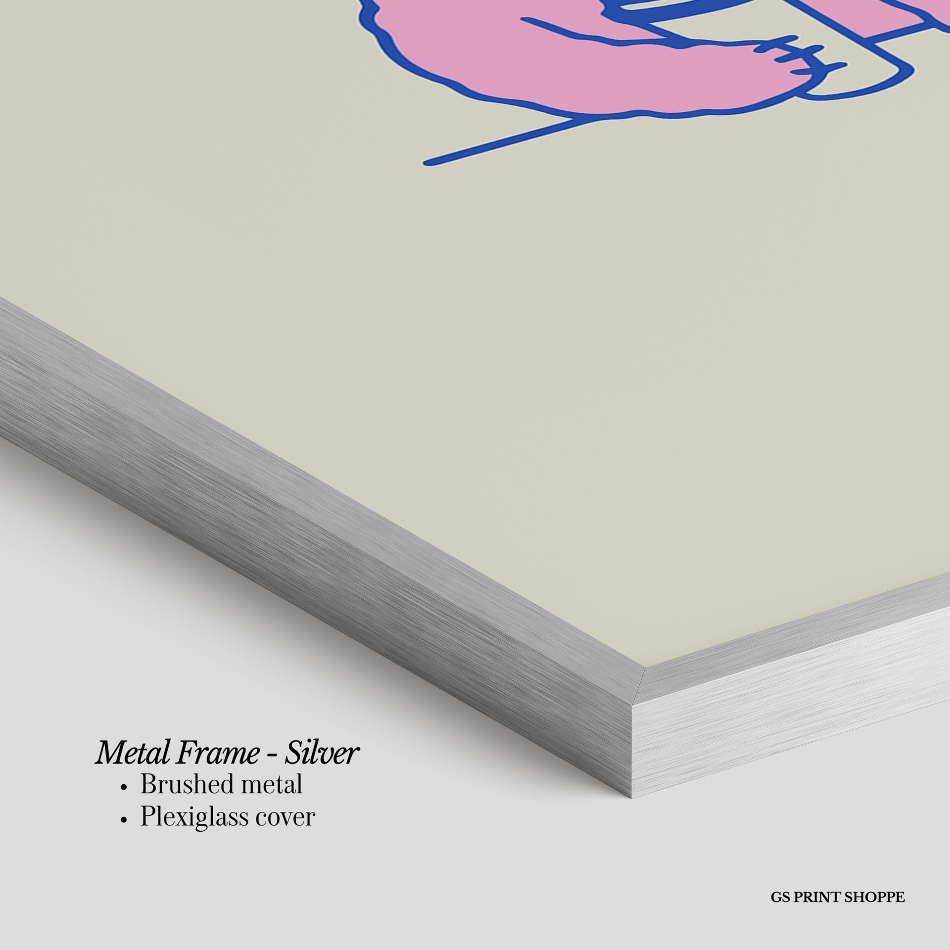 Metal Frame: Sleek and modern, our metal frame is crafted with brushed metal for a polished finish. It comes with durable plexiglass and sturdy metal hangers for horizontal or vertical display.
