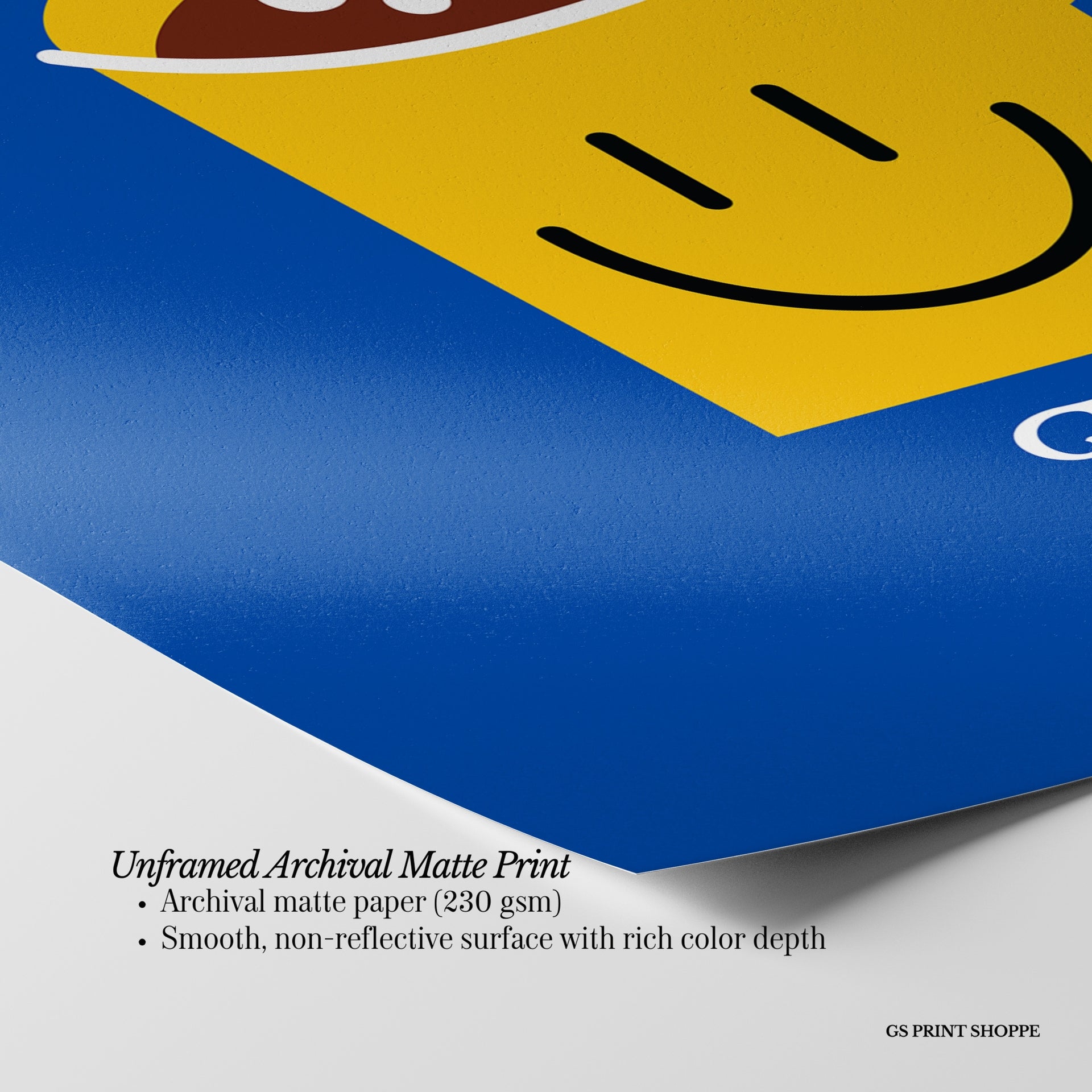 Unframed: This print is professionally printed on archival matte paper (230 gsm), a smooth, acid-free paper with a non-reflective finish. It will be carefully packaged to arrive safely at your door.