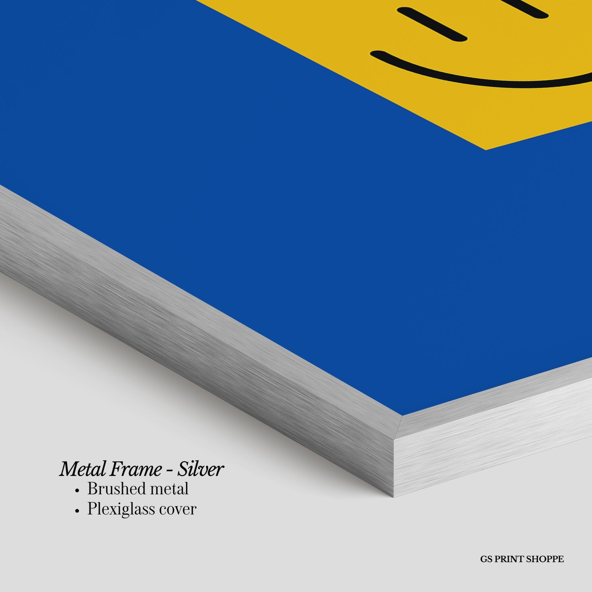 Metal Frame: Sleek and modern, our metal frame is crafted with brushed metal for a polished finish. It comes with durable plexiglass and sturdy metal hangers for horizontal or vertical display.