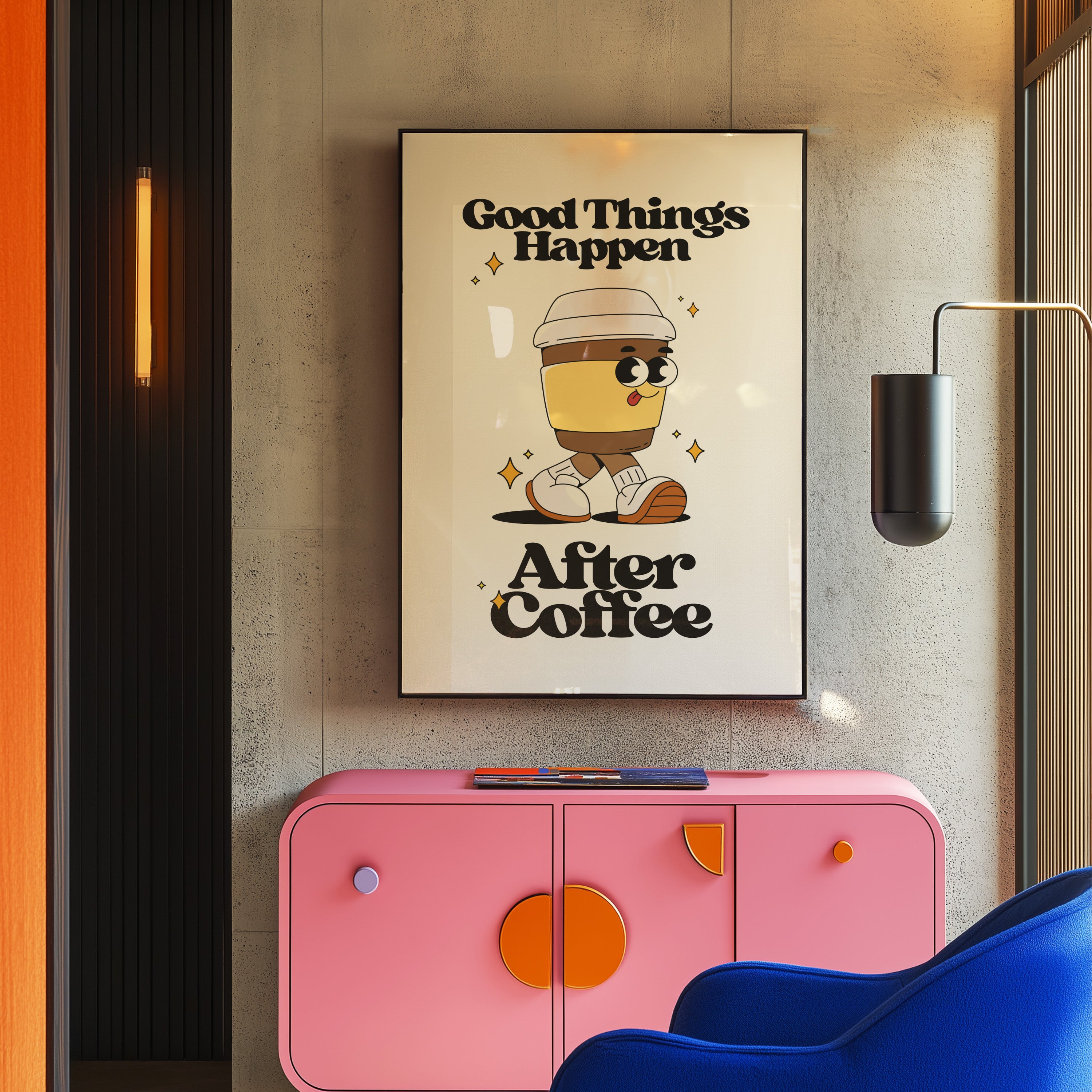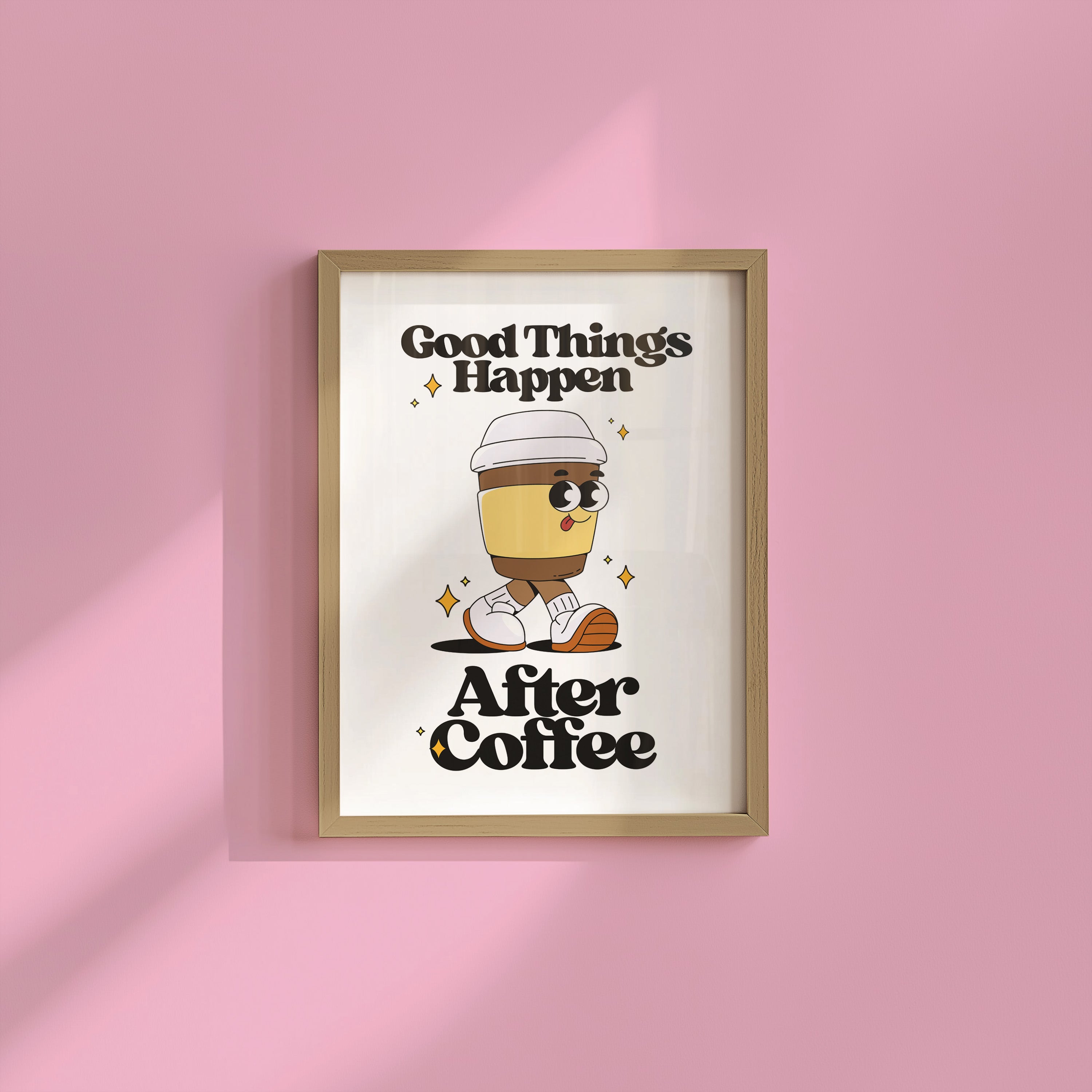 Good Things Happen After Coffee Takeaway Vertical Art Print