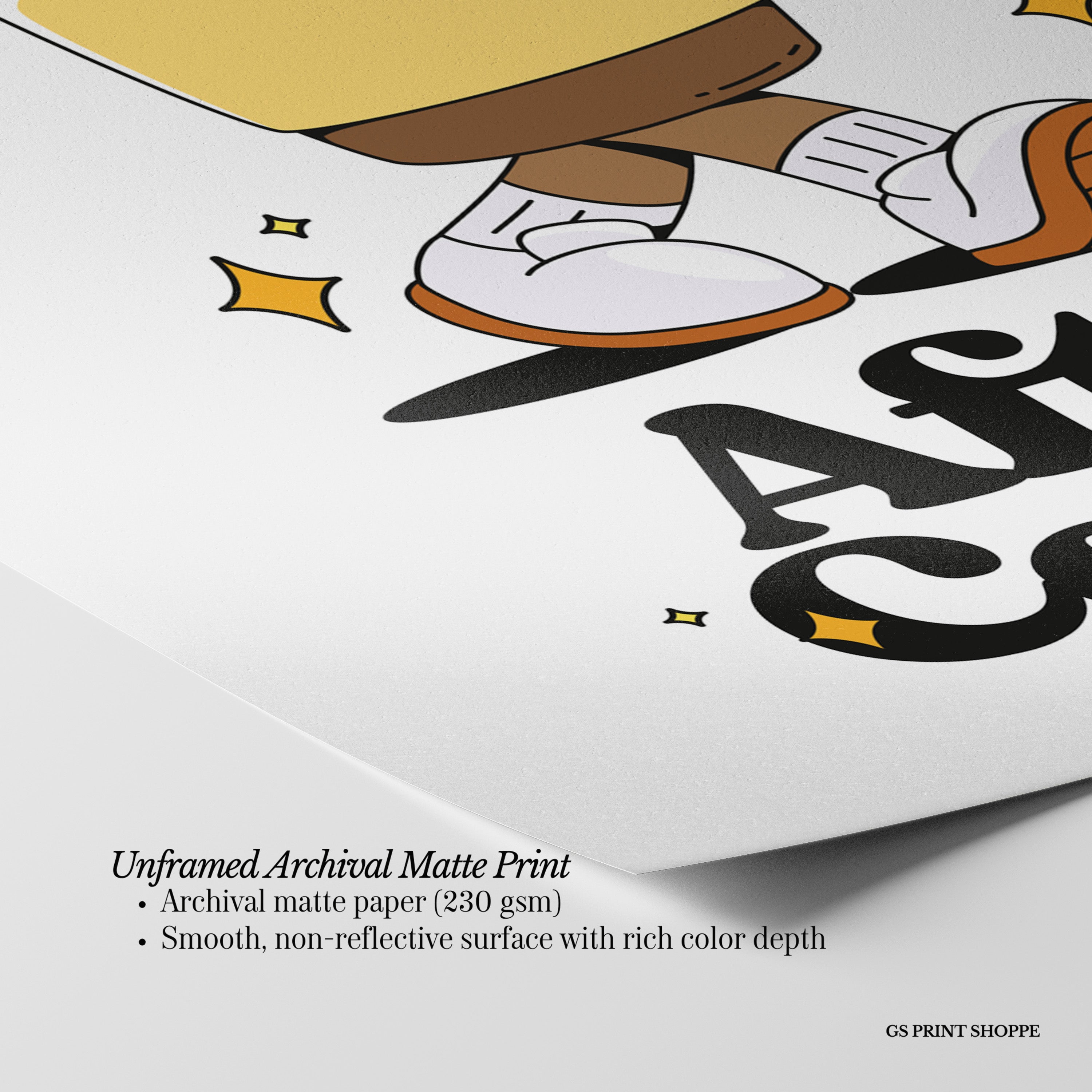 Unframed: This print is professionally printed on archival matte paper (230 gsm), a smooth, acid-free paper with a non-reflective finish. It will be carefully packaged to arrive safely at your door.