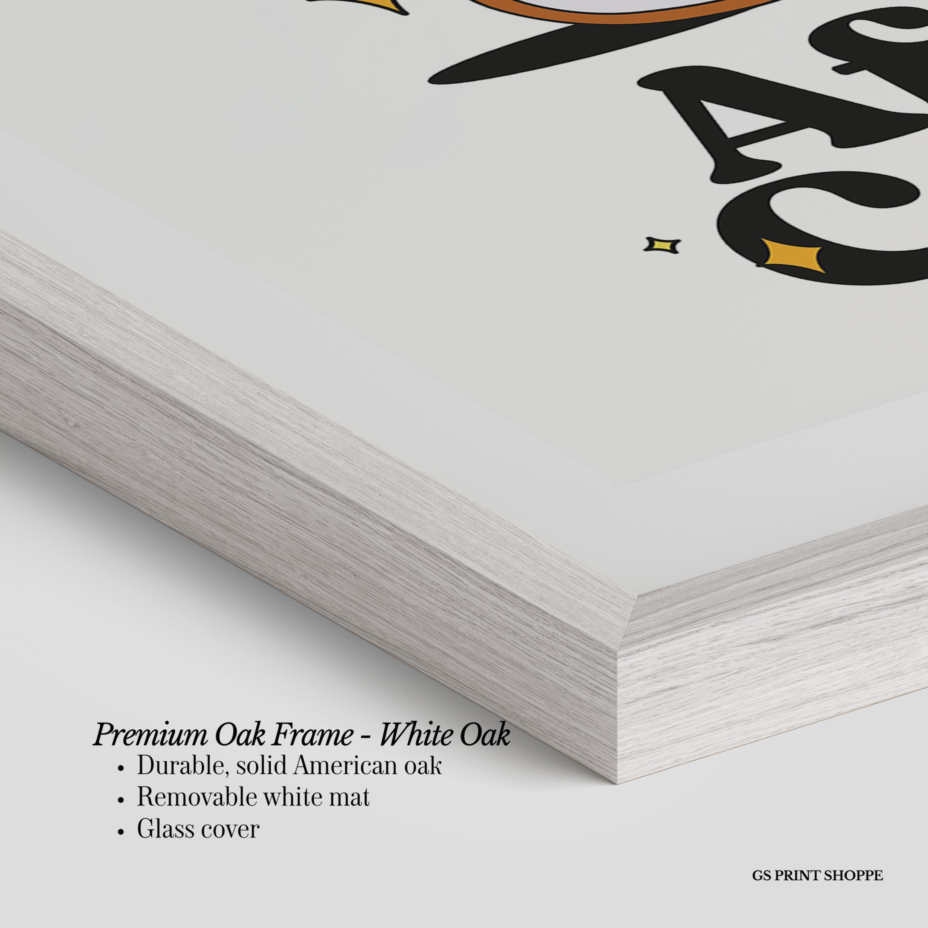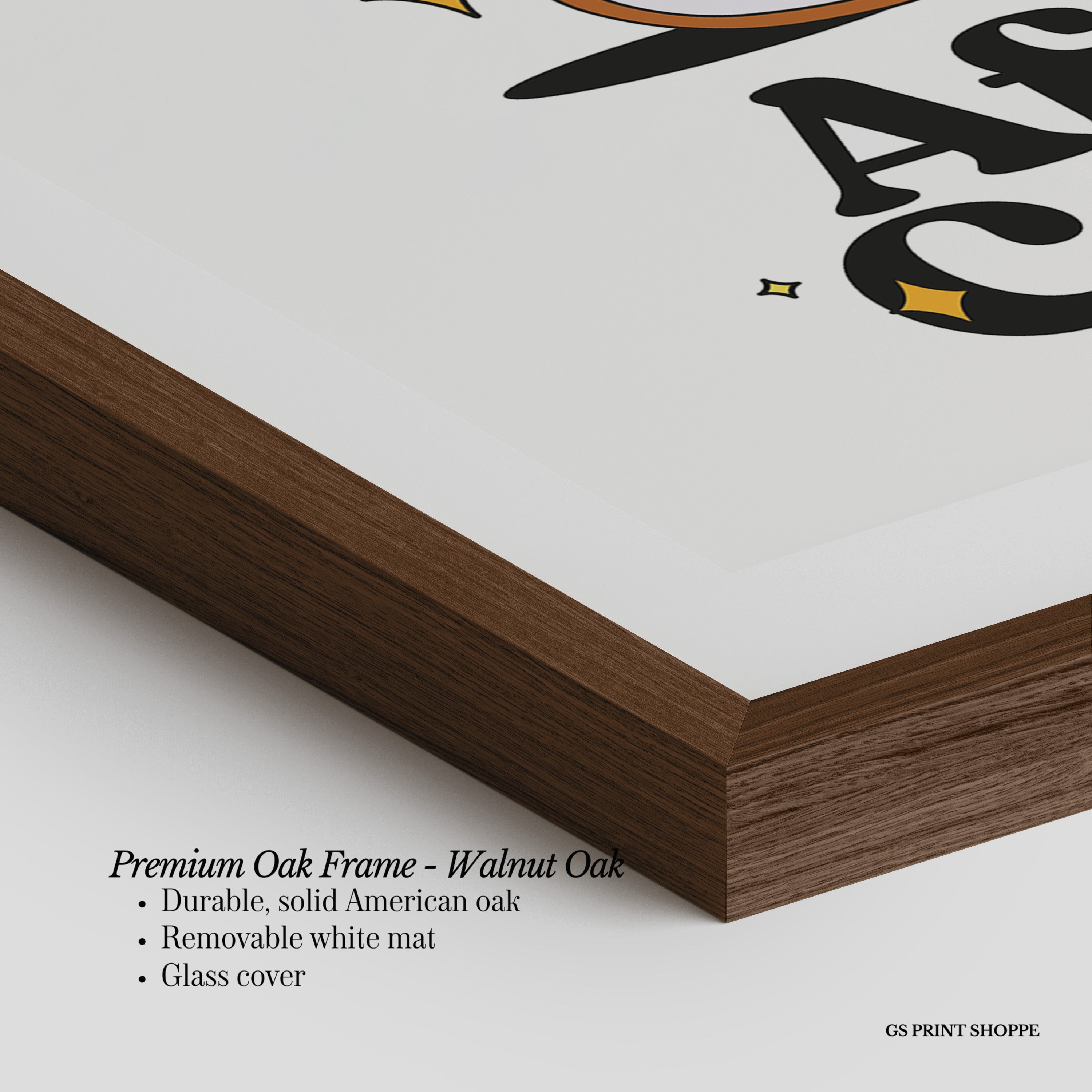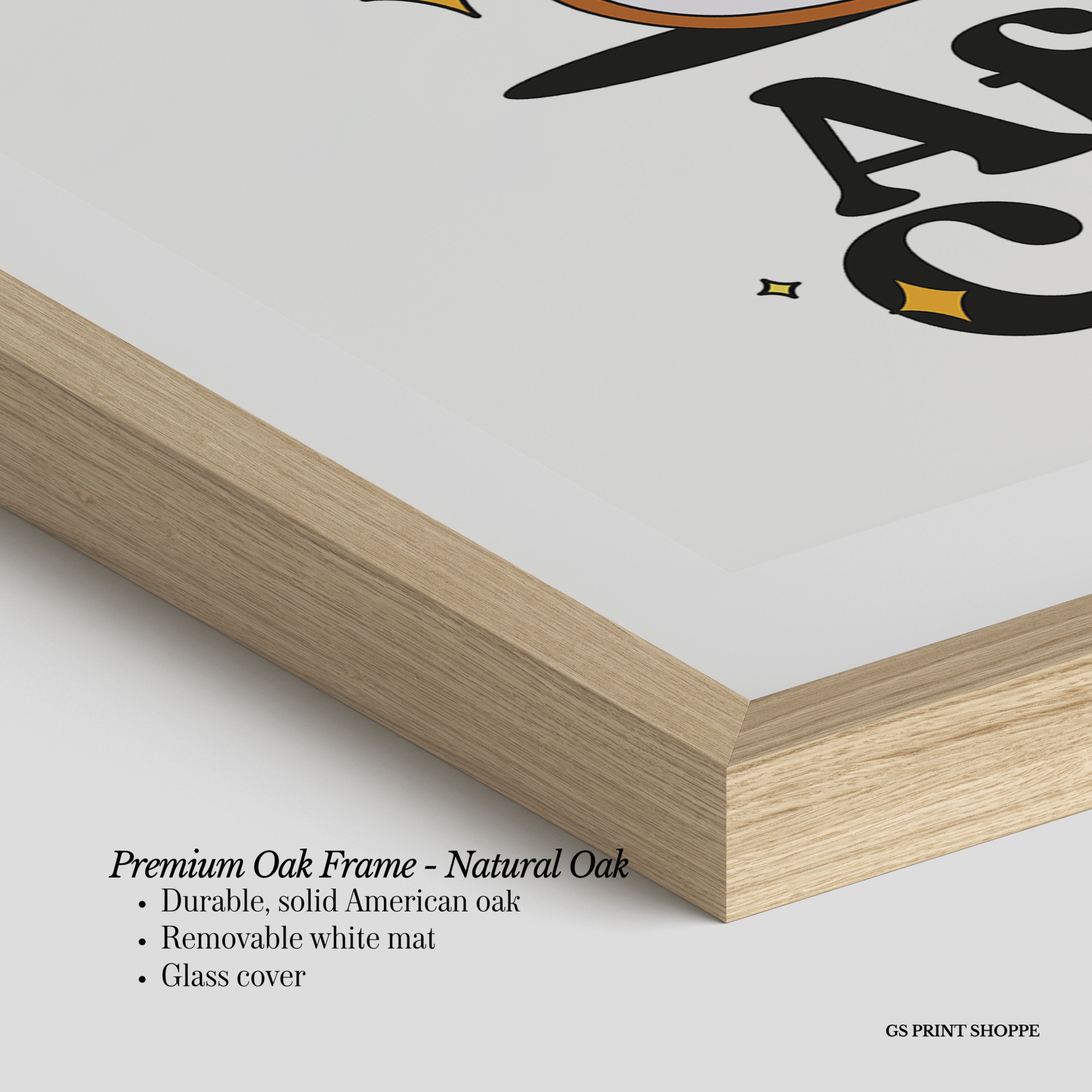 Premium Oak Frame: Our premium oak frame is crafted from solid American oak, offering a warm, natural feel with a high-end finish. We complete this elevated offering with a bright white removable mat and real glass for a versatile and polished look.