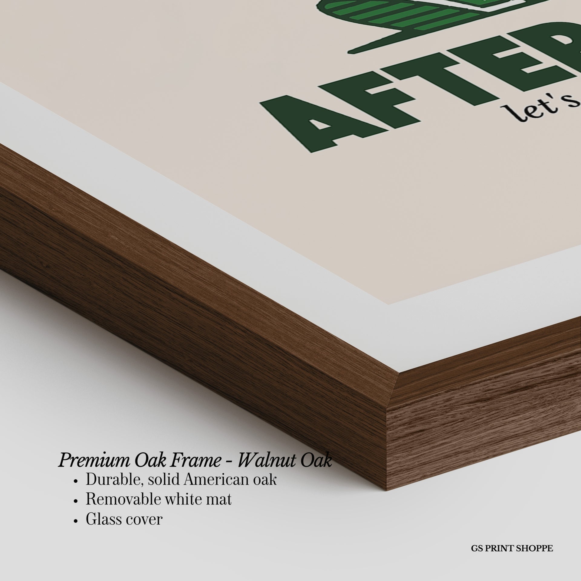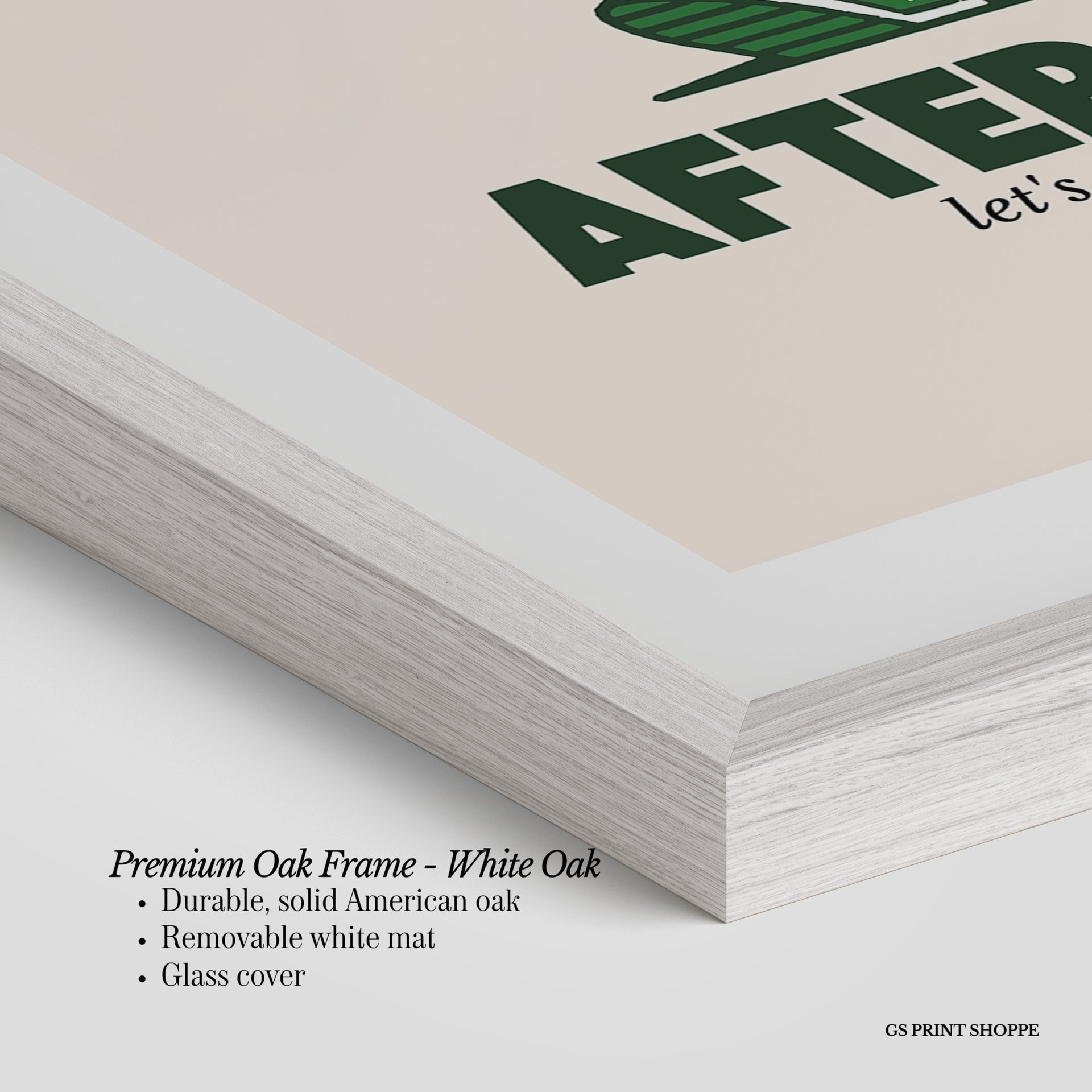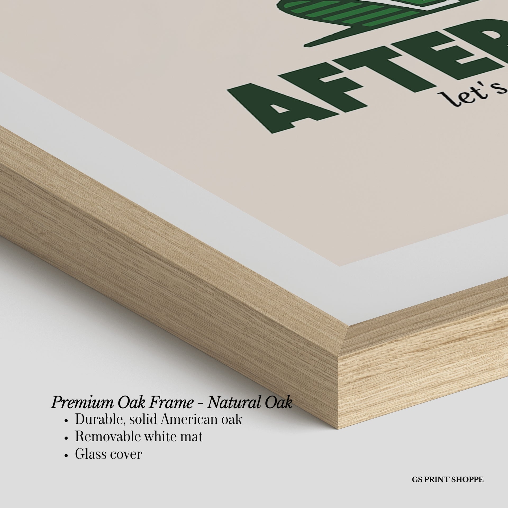 Premium Oak Frame: Our premium oak frame is crafted from solid American oak, offering a warm, natural feel with a high-end finish. We complete this elevated offering with a bright white removable mat and real glass for a versatile and polished look.