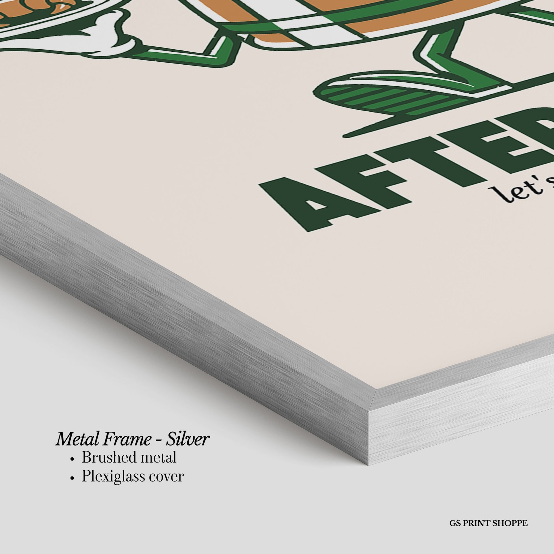 Metal Frame: Sleek and modern, our metal frame is crafted with brushed metal for a polished finish. It comes with durable plexiglass and sturdy metal hangers for horizontal or vertical display.