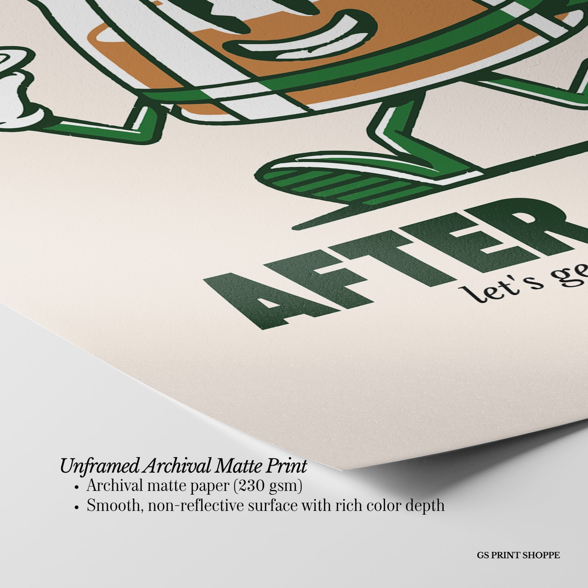 Unframed: This print is professionally printed on archival matte paper (230 gsm), a smooth, acid-free paper with a non-reflective finish. It will be carefully packaged to arrive safely at your door.
