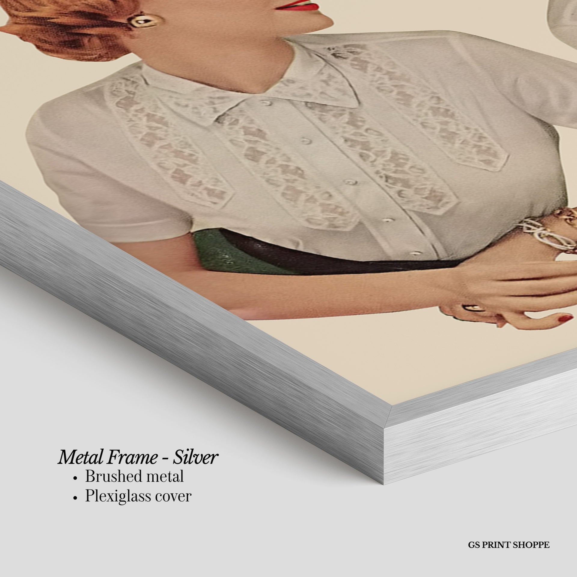 Metal Frame: Sleek and modern, our metal frame is crafted with brushed metal for a polished finish. It comes with durable plexiglass and sturdy metal hangers for horizontal or vertical display.