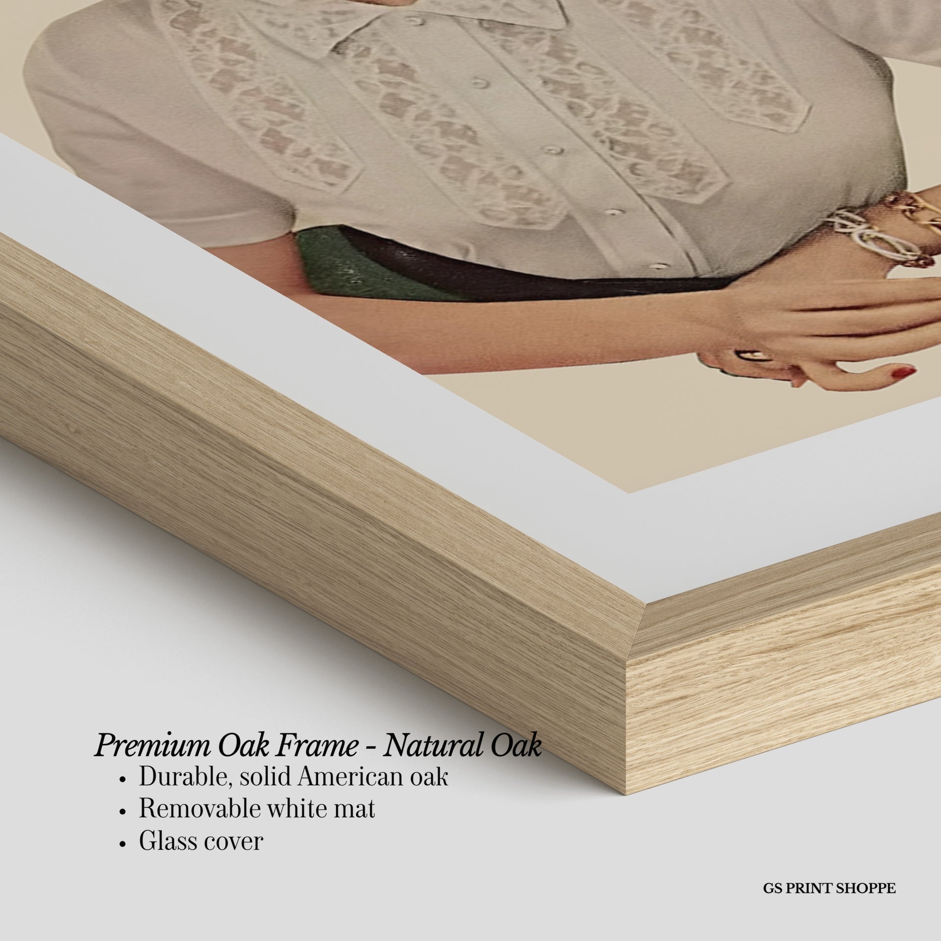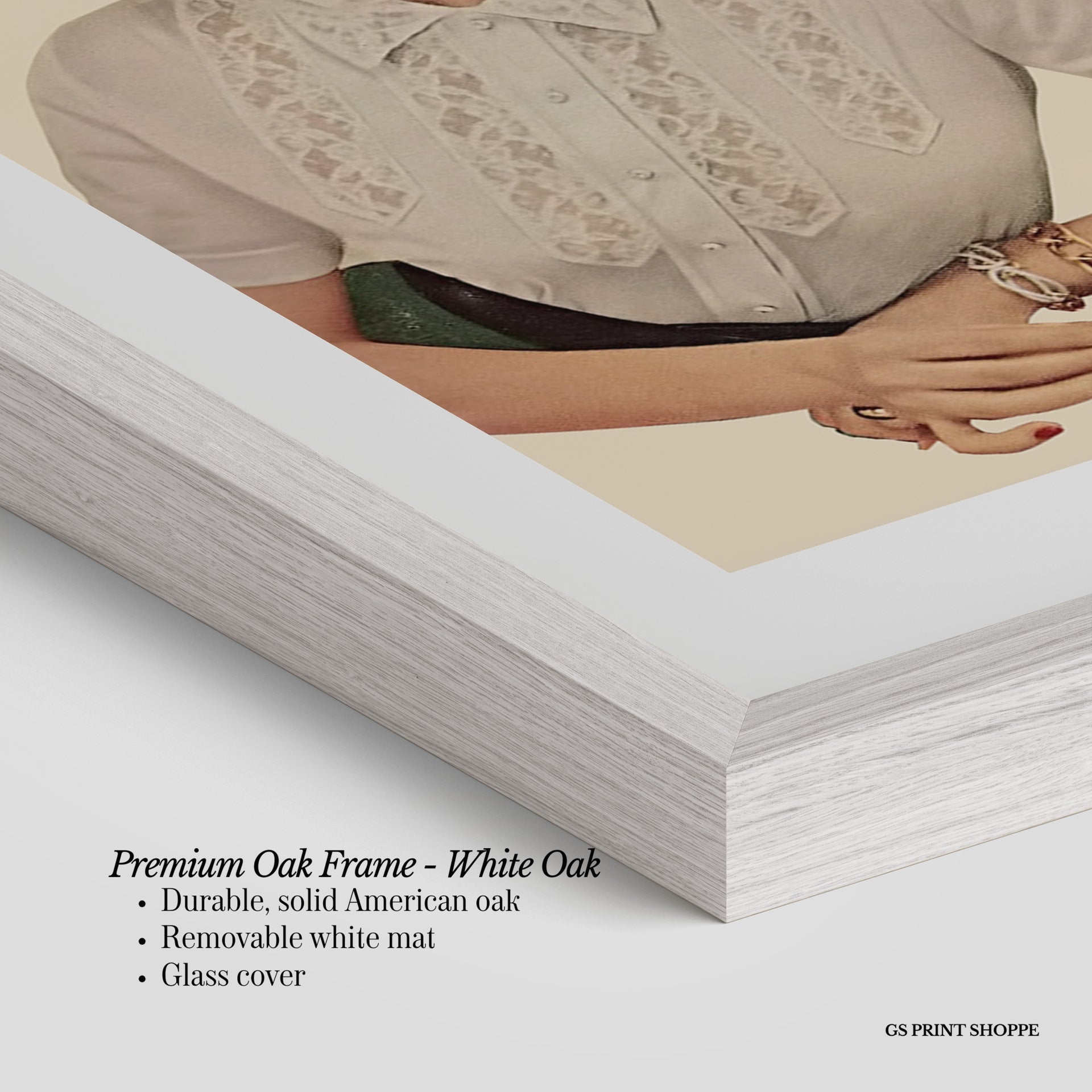 Premium Oak Frame: Our premium oak frame is crafted from solid American oak, offering a warm, natural feel with a high-end finish. We complete this elevated offering with a bright white removable mat and real glass for a versatile and polished look.