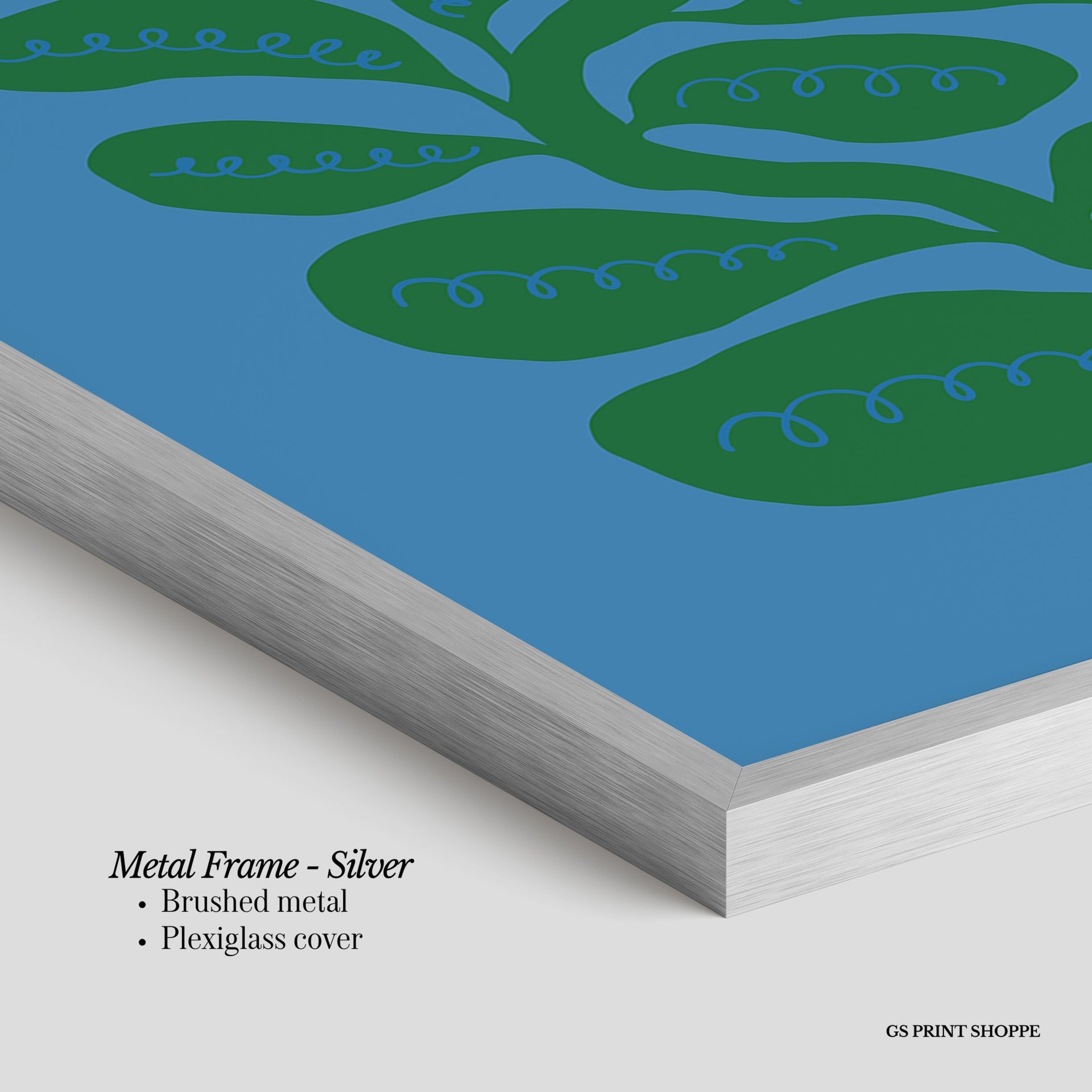 Metal Frame: Sleek and modern, our metal frame is crafted with brushed metal for a polished finish. It comes with durable plexiglass and sturdy metal hangers for horizontal or vertical display.