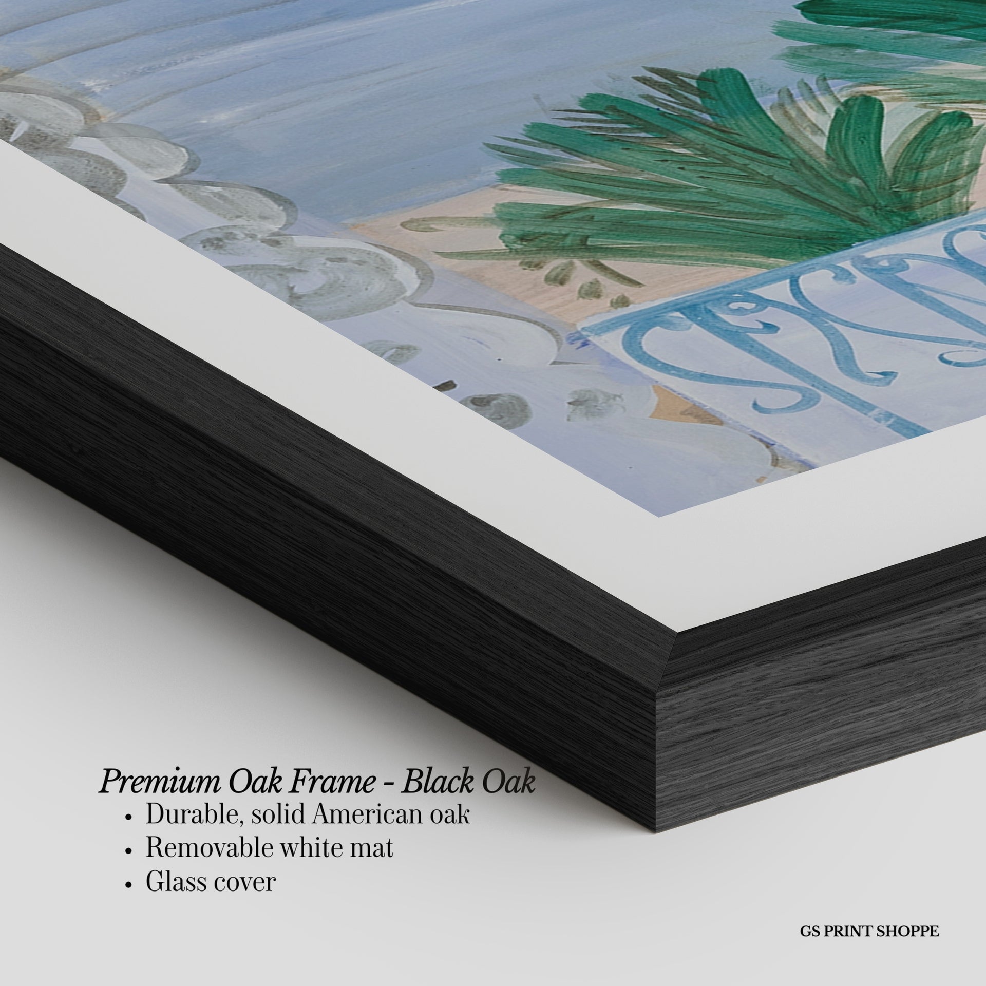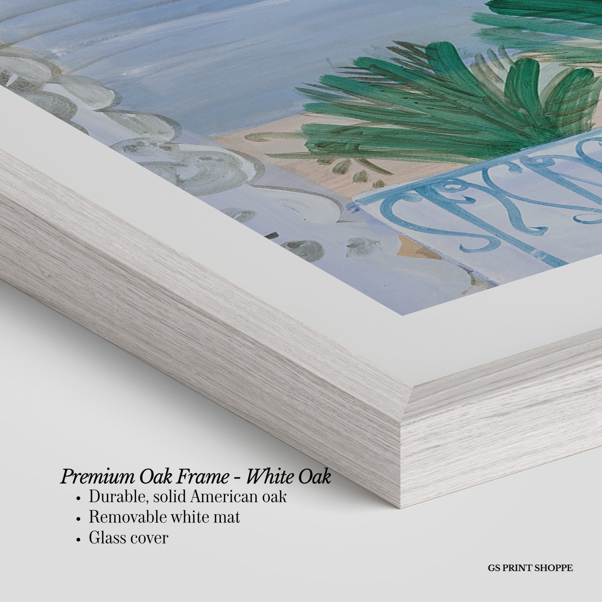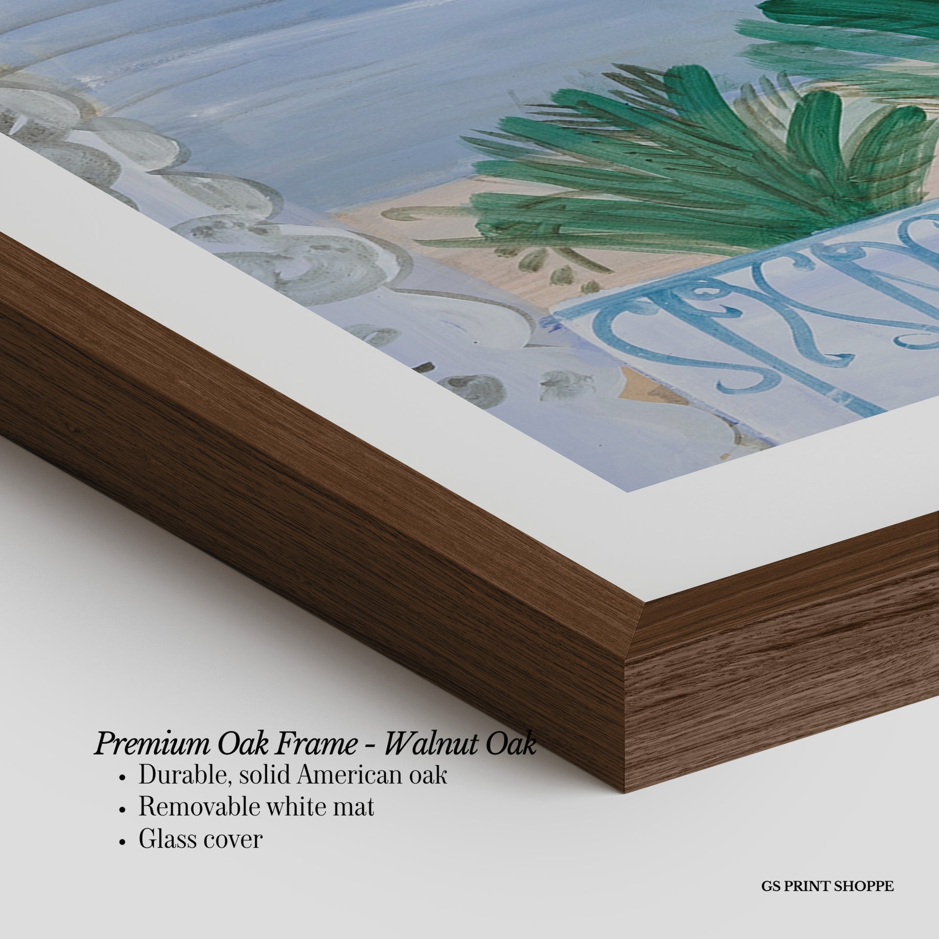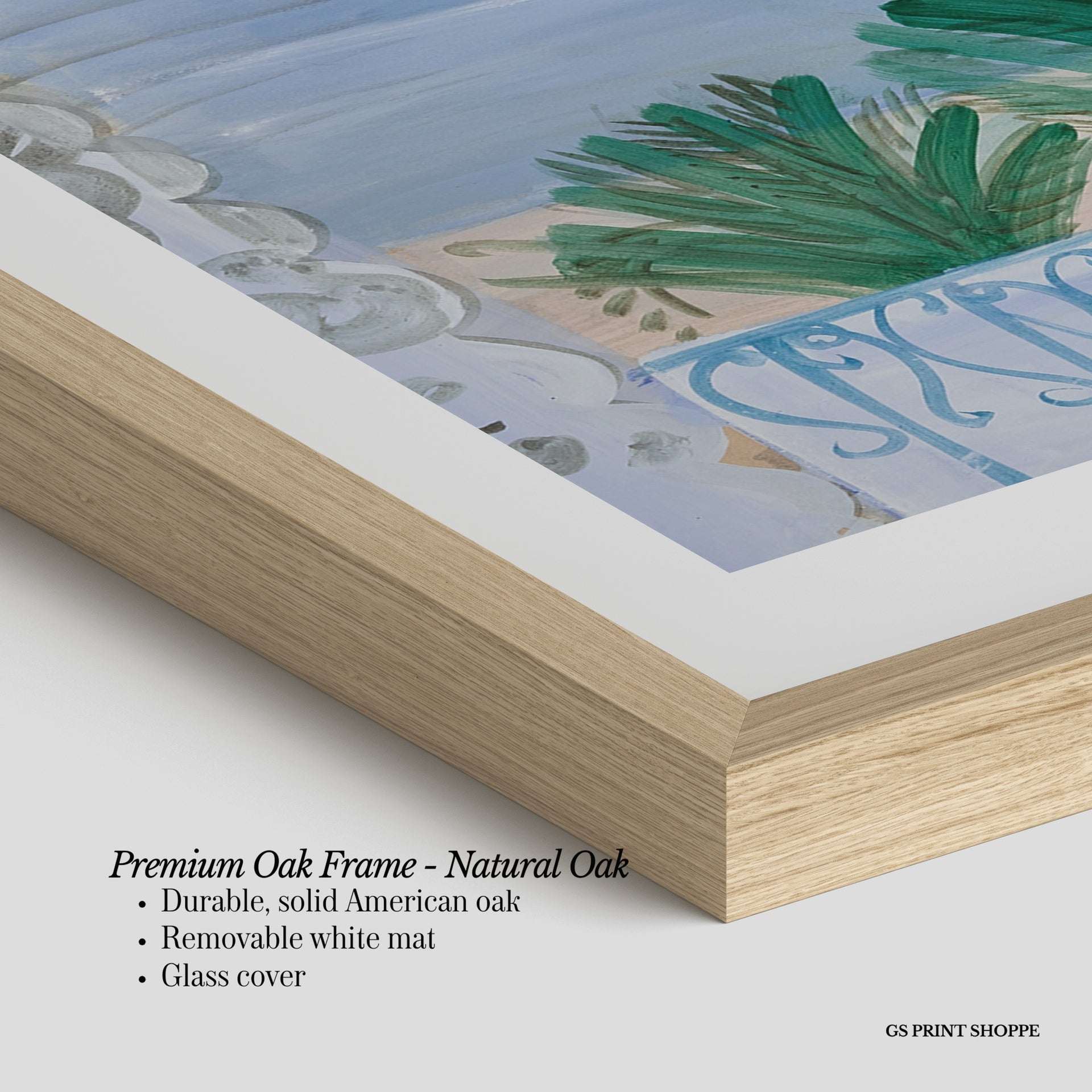 Premium Oak Frame: Our premium oak frame is crafted from solid American oak, offering a warm, natural feel with a high-end finish. We complete this elevated offering with a bright white removable mat and real glass for a versatile and polished look.