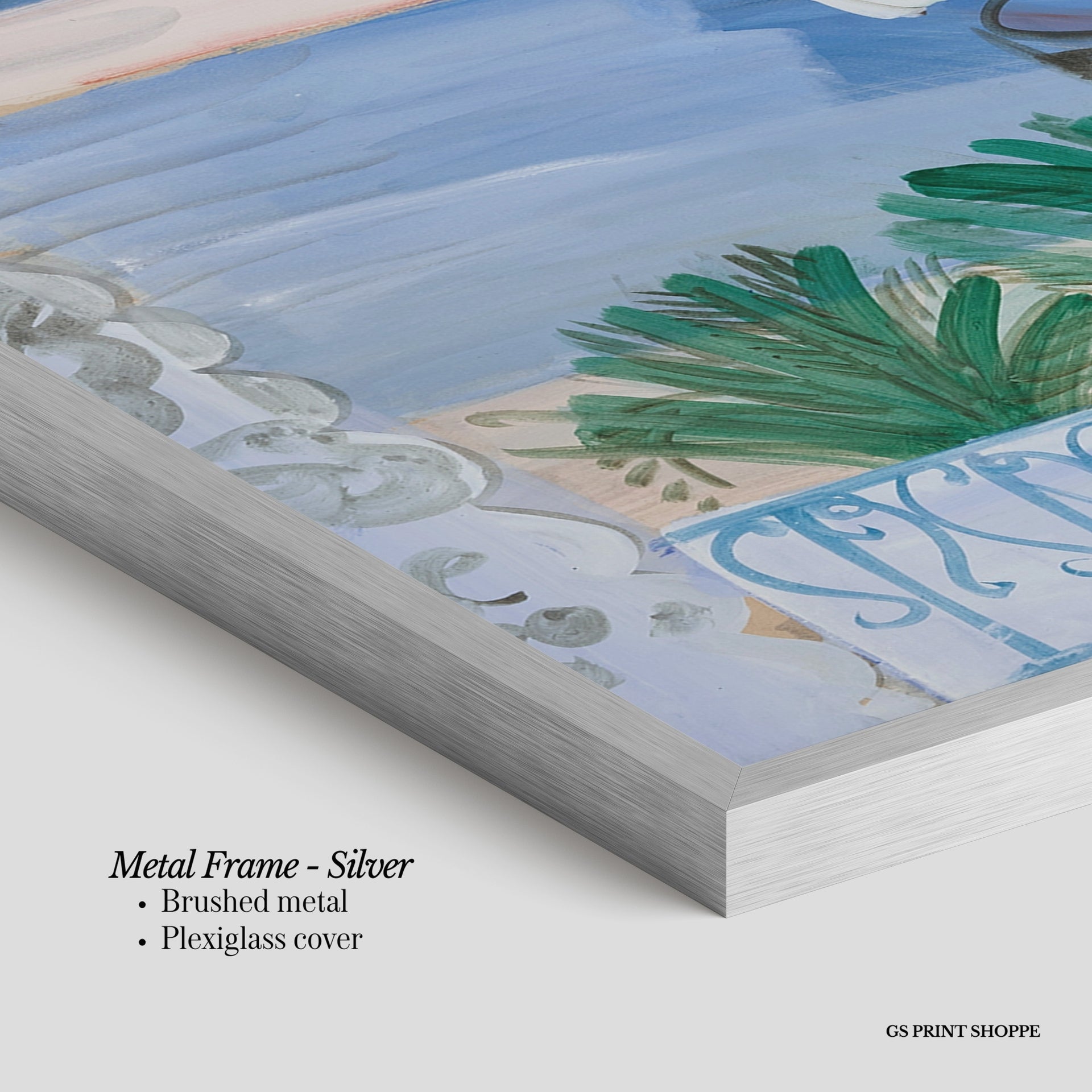 Metal Frame: Sleek and modern, our metal frame is crafted with brushed metal for a polished finish. It comes with durable plexiglass and sturdy metal hangers for horizontal or vertical display.