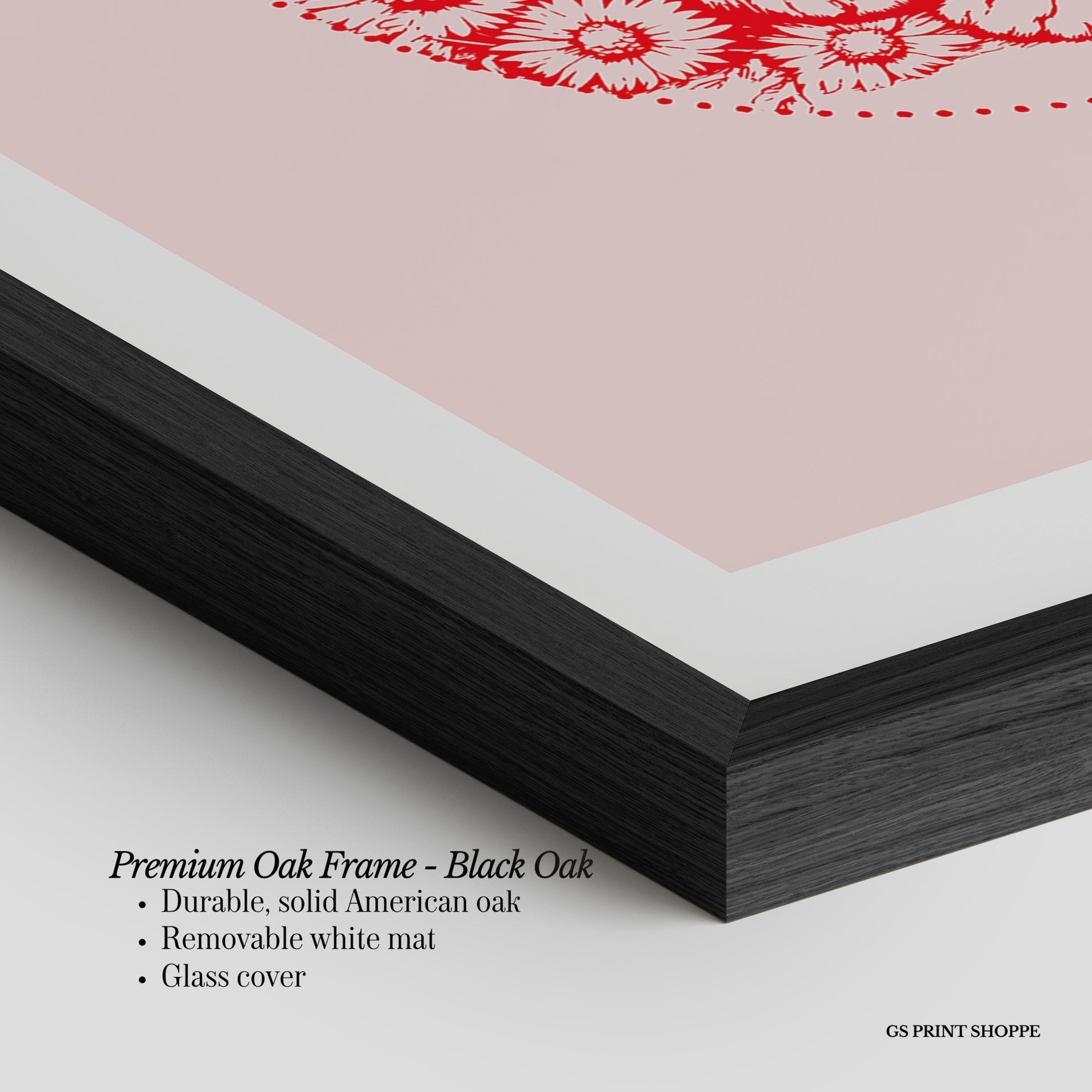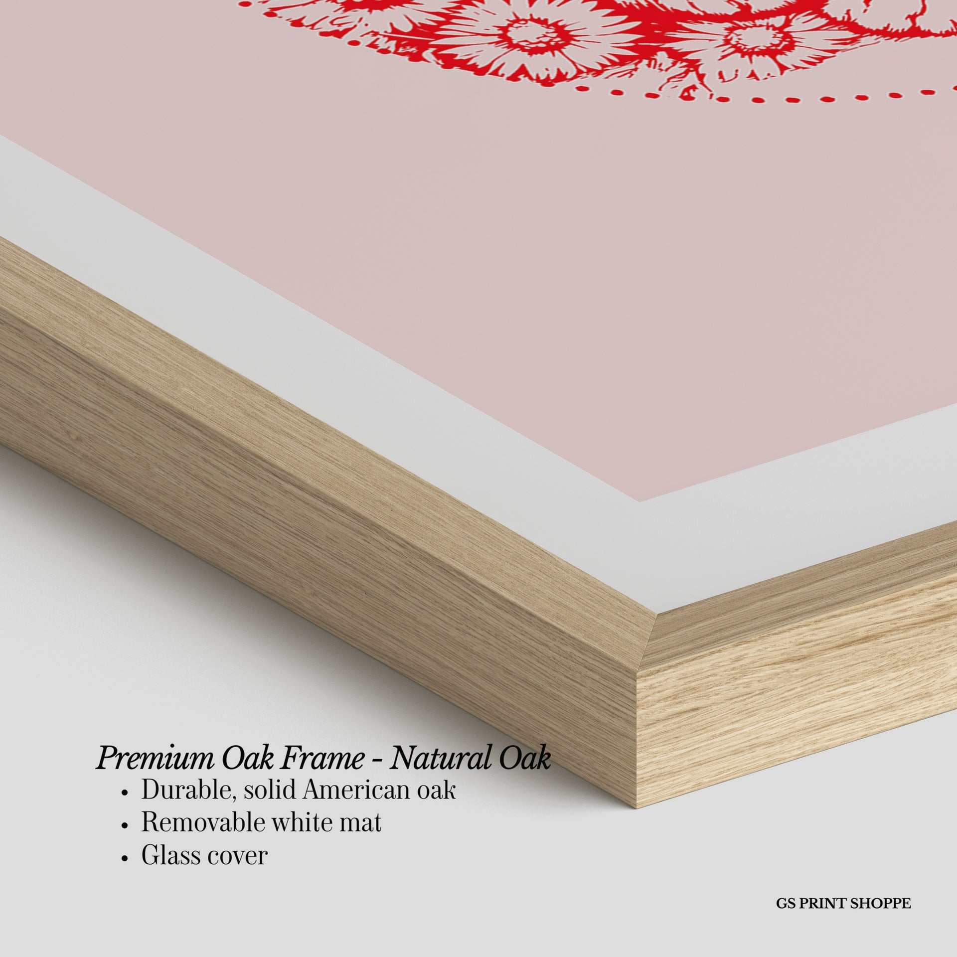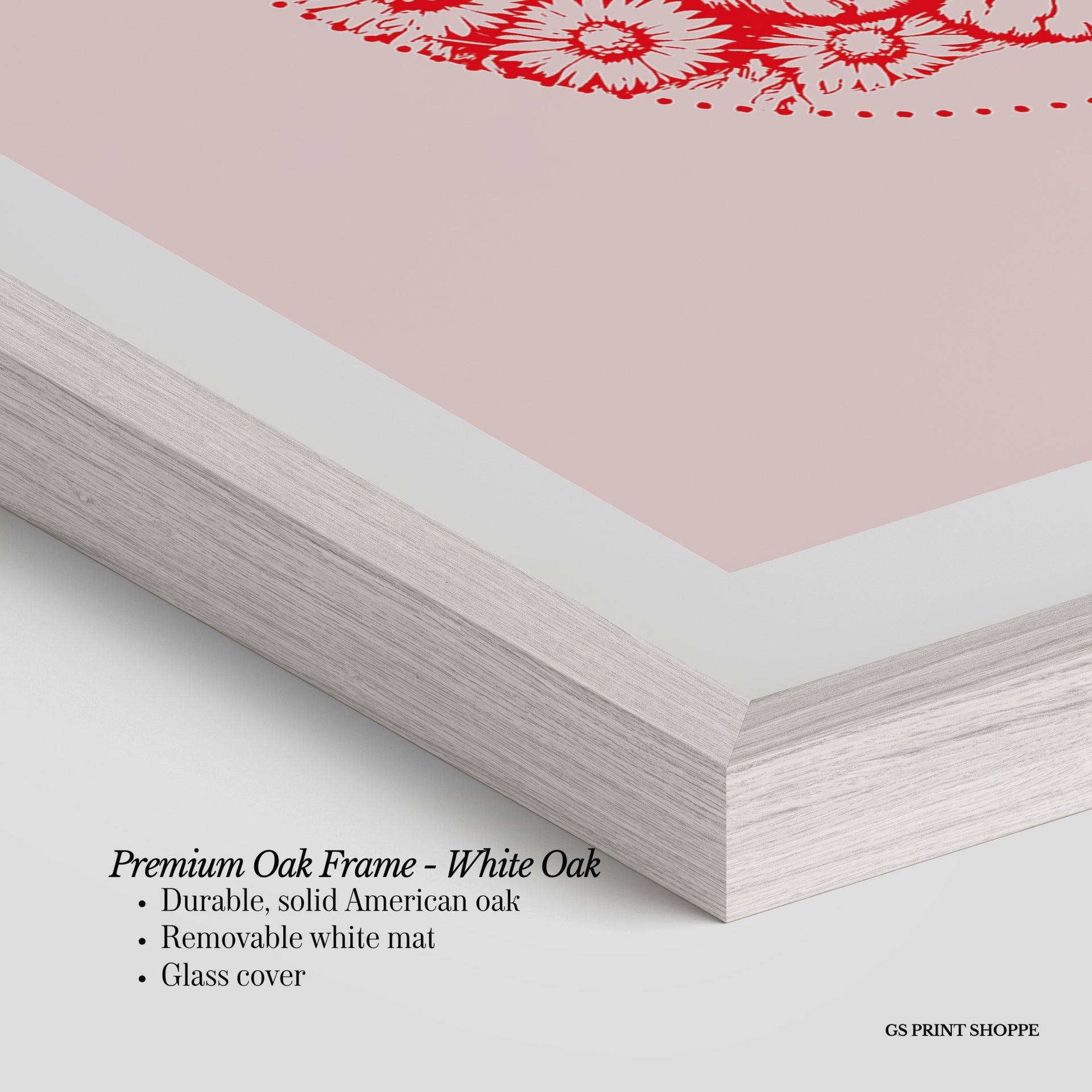 Premium Oak Frame: Our premium oak frame is crafted from solid American oak, offering a warm, natural feel with a high-end finish. We complete this elevated offering with a bright white removable mat and real glass for a versatile and polished look.