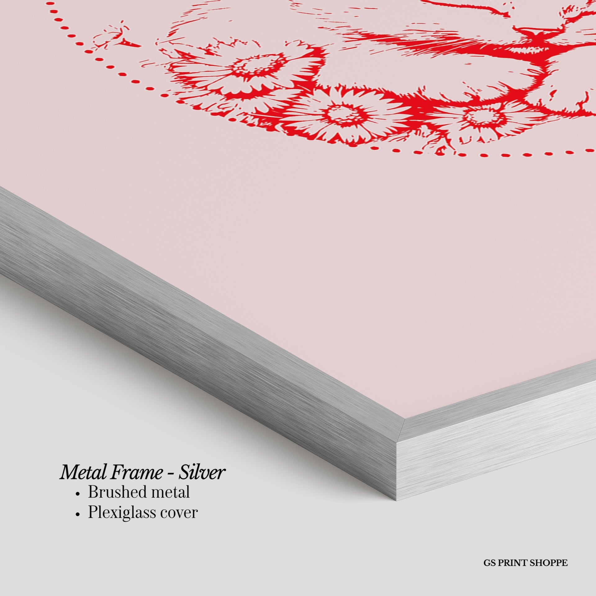 Metal Frame: Sleek and modern, our metal frame is crafted with brushed metal for a polished finish. It comes with durable plexiglass and sturdy metal hangers for horizontal or vertical display.
