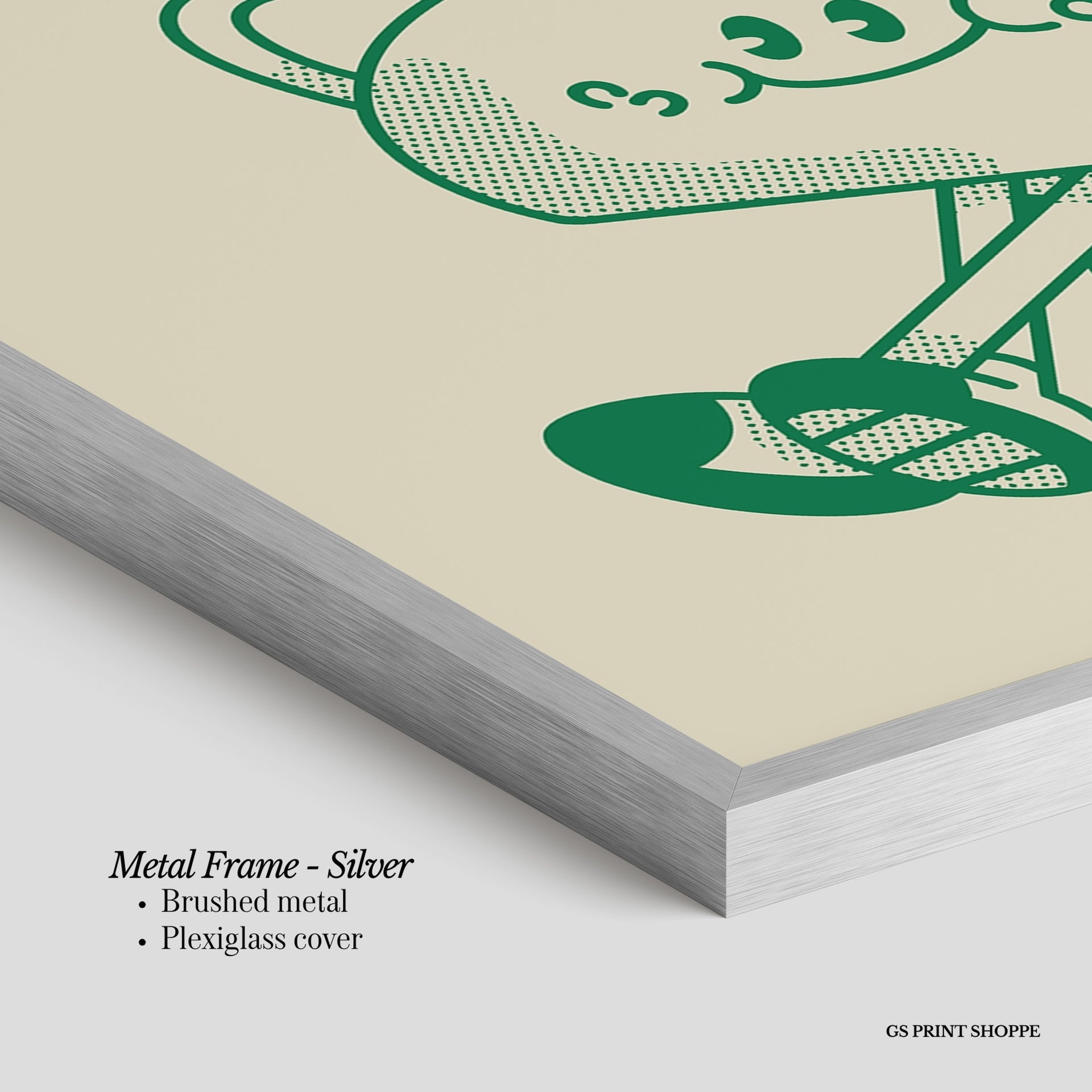 Metal Frame: Sleek and modern, our metal frame is crafted with brushed metal for a polished finish. It comes with durable plexiglass and sturdy metal hangers for horizontal or vertical display.