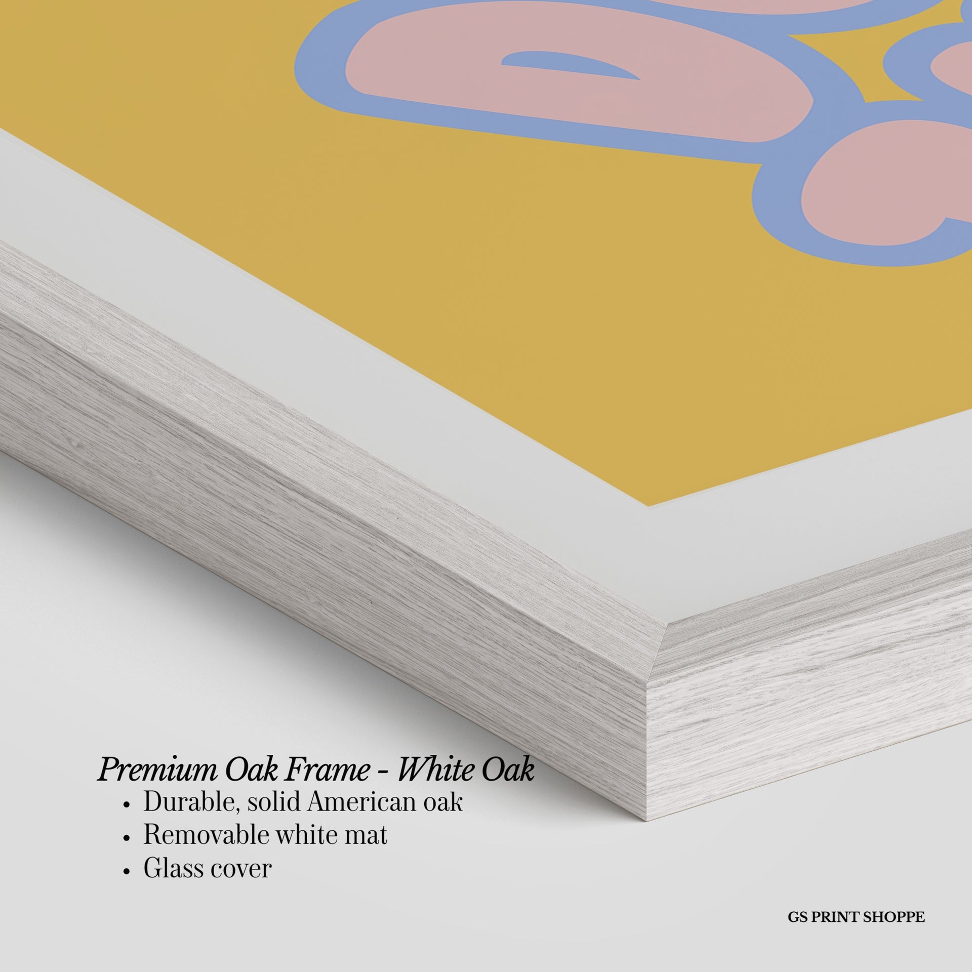 Premium Oak Frame: Our premium oak frame is crafted from solid American oak, offering a warm, natural feel with a high-end finish. We complete this elevated offering with a bright white removable mat and real glass for a versatile and polished look.