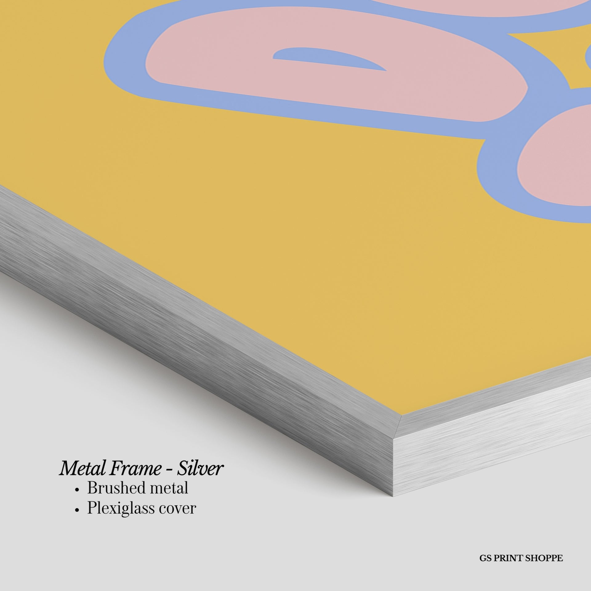Metal Frame: Sleek and modern, our metal frame is crafted with brushed metal for a polished finish. It comes with durable plexiglass and sturdy metal hangers for horizontal or vertical display.