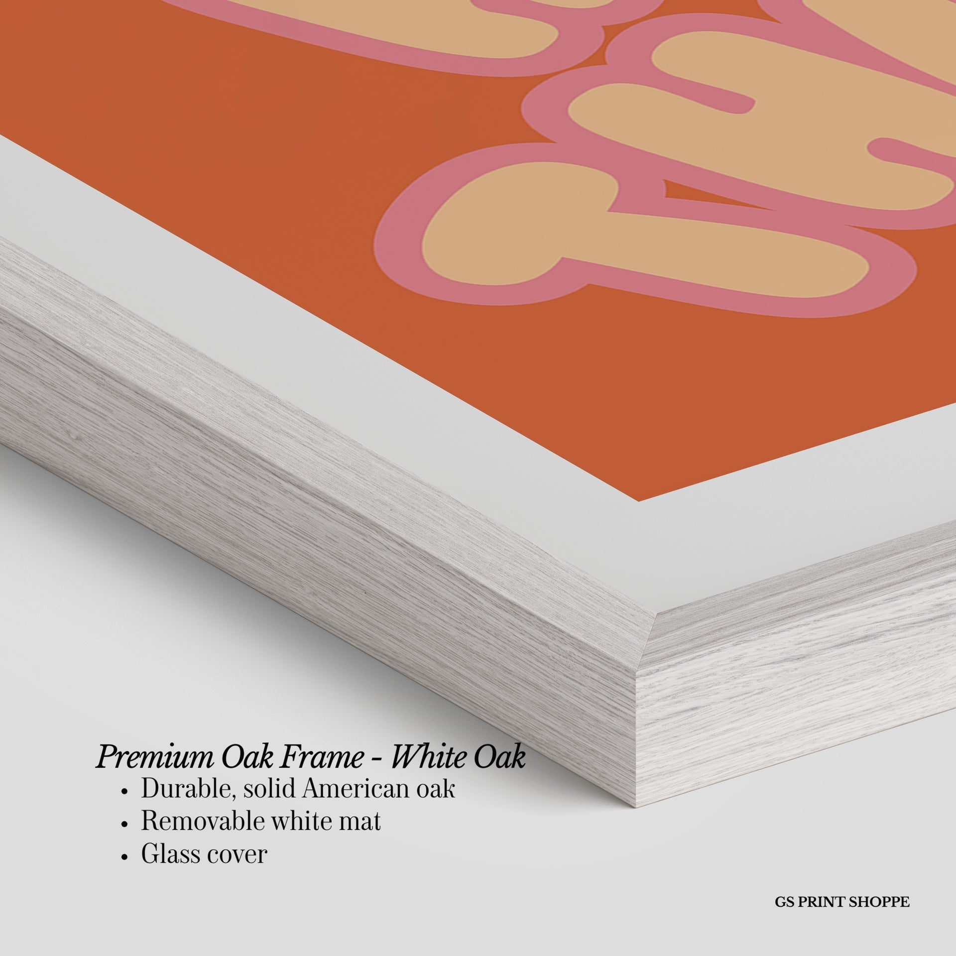 Premium Oak Frame: Our premium oak frame is crafted from solid American oak, offering a warm, natural feel with a high-end finish. We complete this elevated offering with a bright white removable mat and real glass for a versatile and polished look.