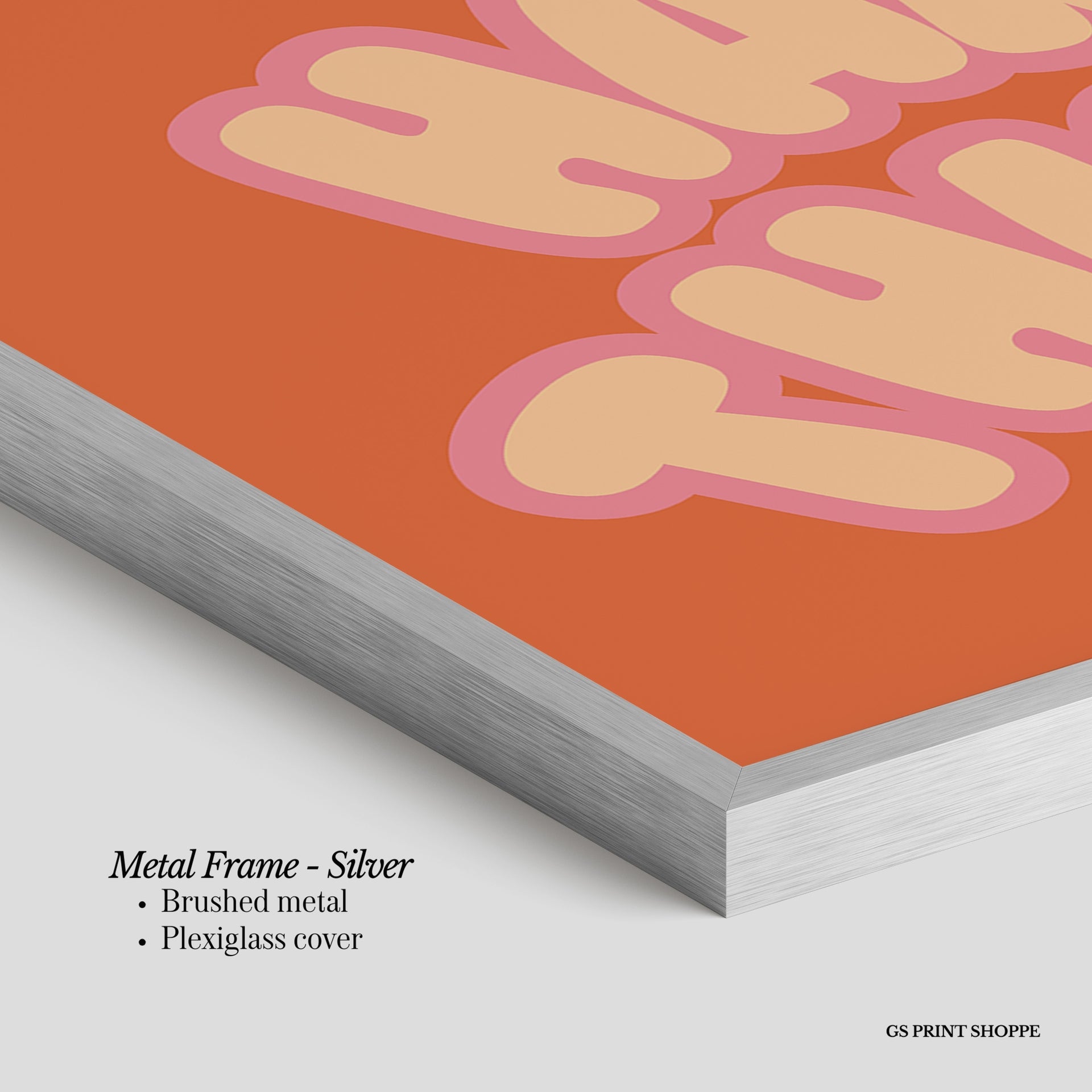 Metal Frame: Sleek and modern, our metal frame is crafted with brushed metal for a polished finish. It comes with durable plexiglass and sturdy metal hangers for horizontal or vertical display.