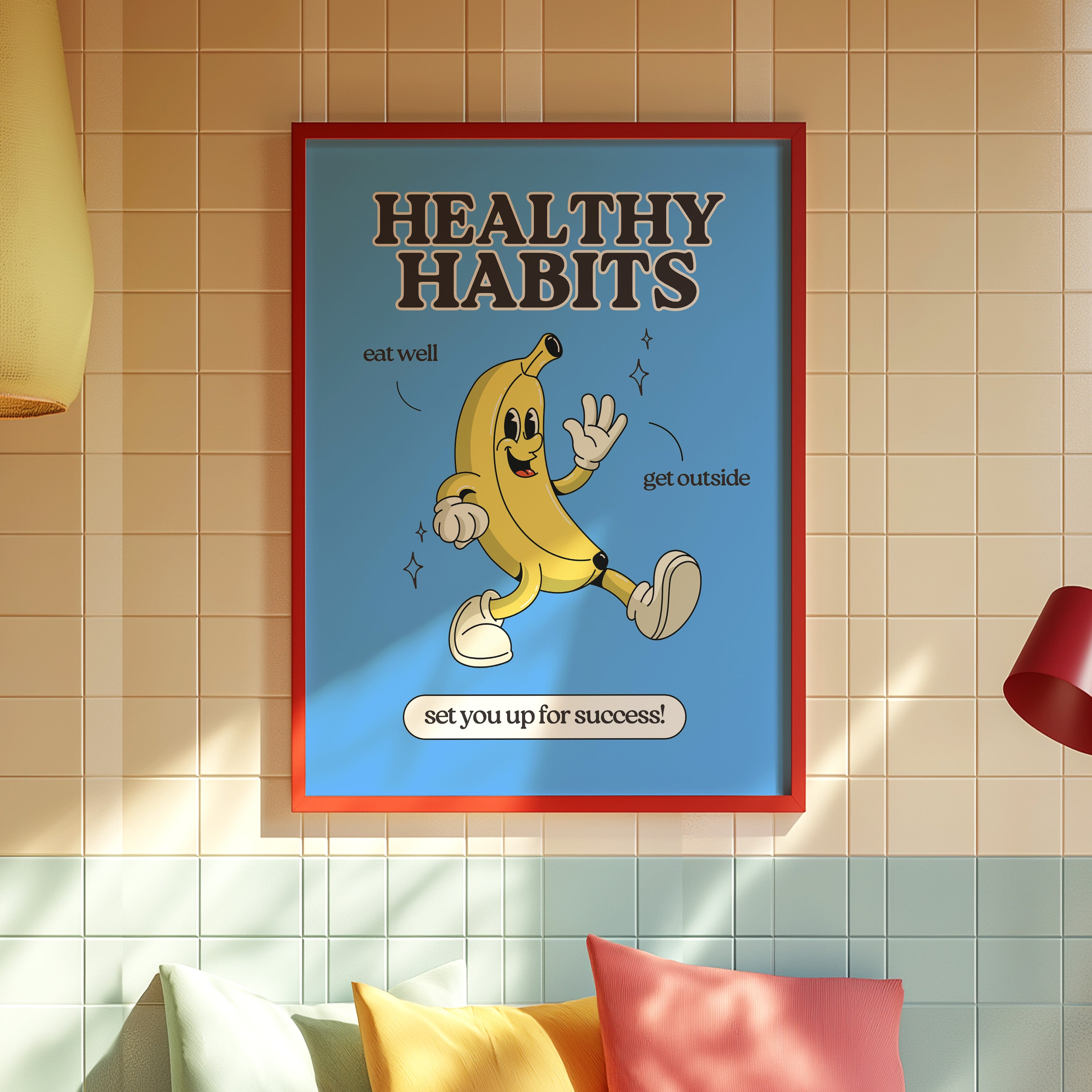 Healthy Habits Vertical Art Print - Blue