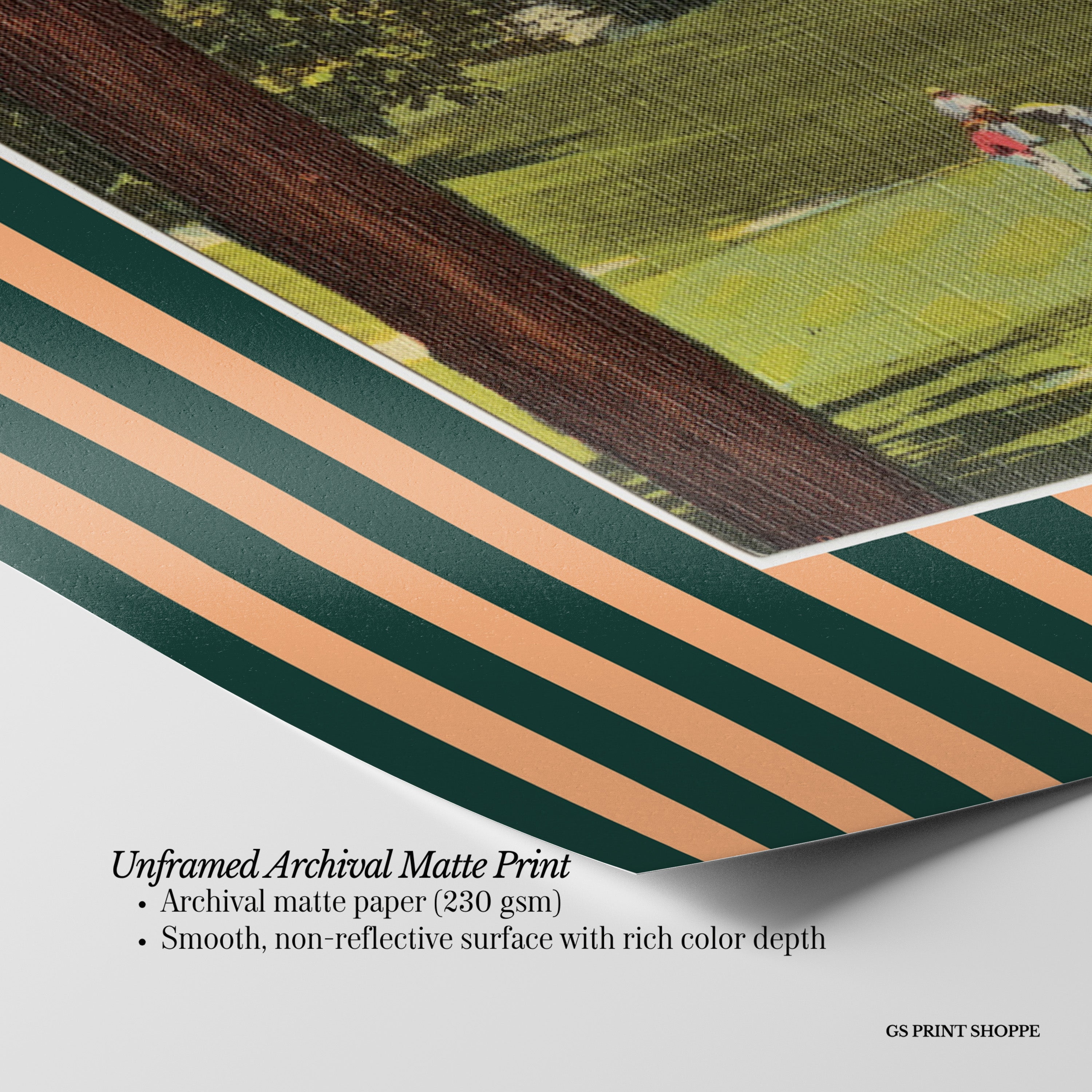Unframed: This print is professionally printed on archival matte paper (230 gsm), a smooth, acid-free paper with a non-reflective finish. It will be carefully packaged to arrive safely at your door.